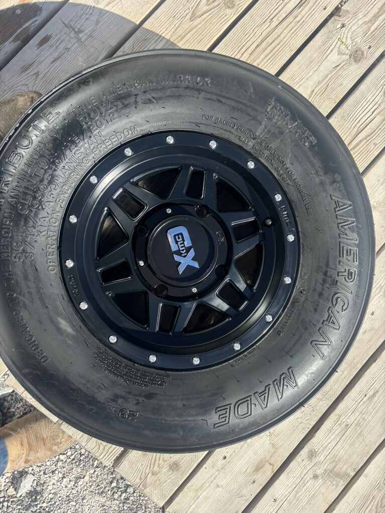 VenmoBasically brand new sand Tires. Only been used twice. Fits Razor Polaris 1000 xp. Bought with Razor with extra tires but we don’t ride at the dunes. KMC XD rims. Sand Tires Unlimited. Backs are 28/14 Sand Blaster II, fronts 29/14 American Made Tribute.