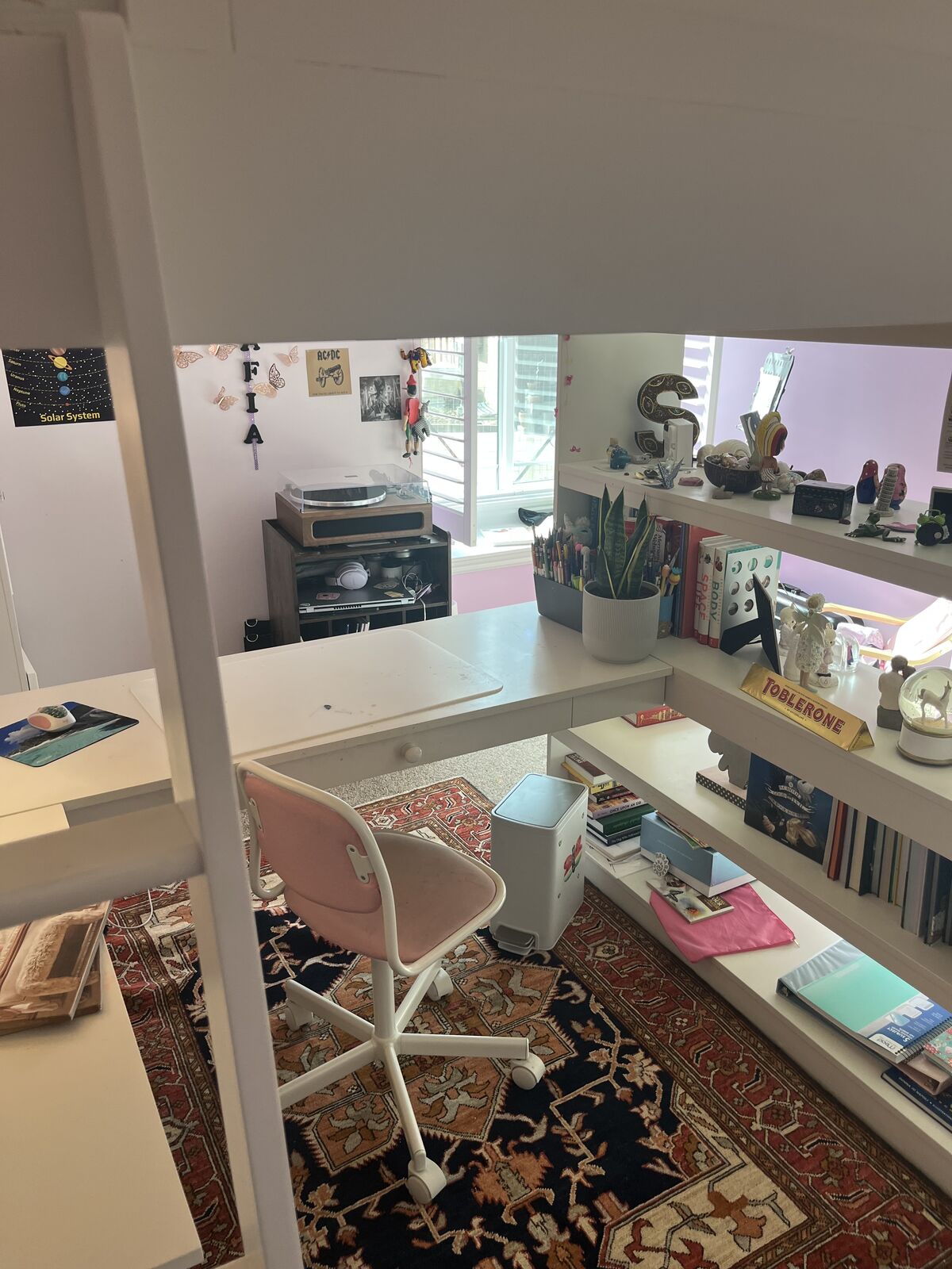 Mattress is included, which is in great condition and always had mattress cover and protector on, has shelfs, L shaped desk and drawer.