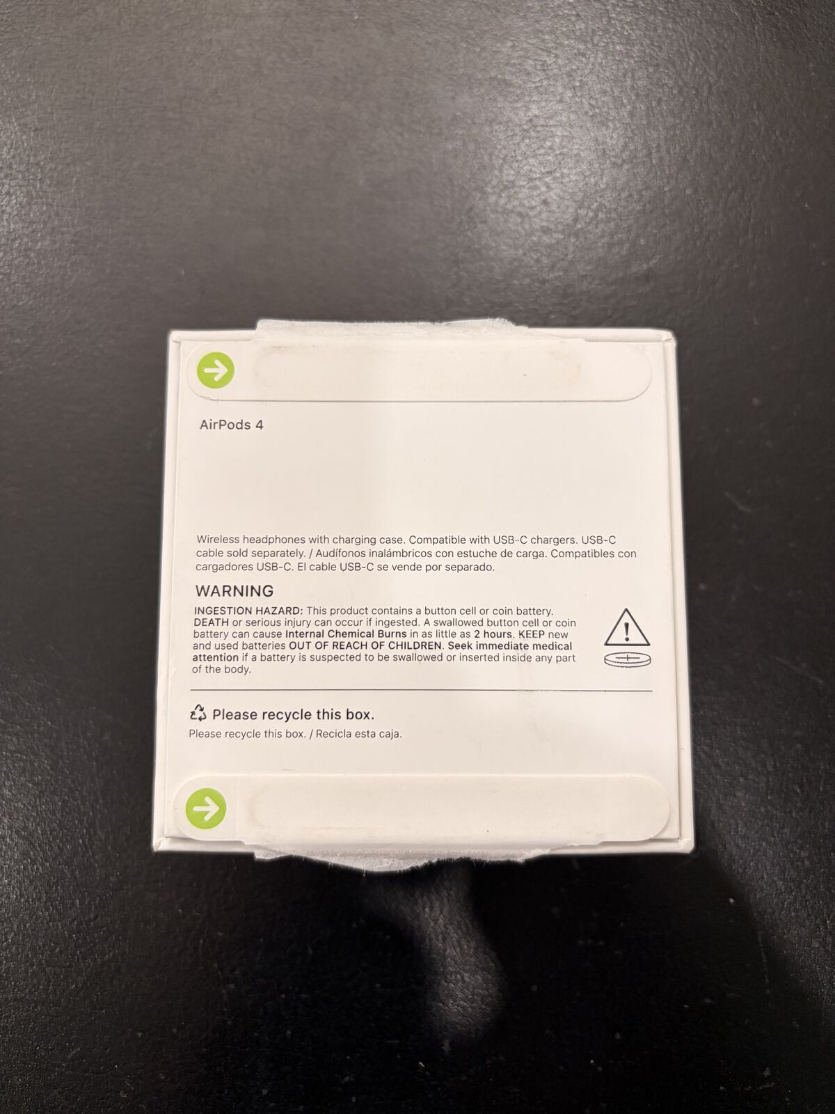 VenmoOpen box airpods 4. Excellent shape. Decided I want ANC instead.