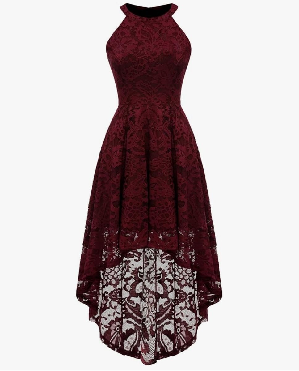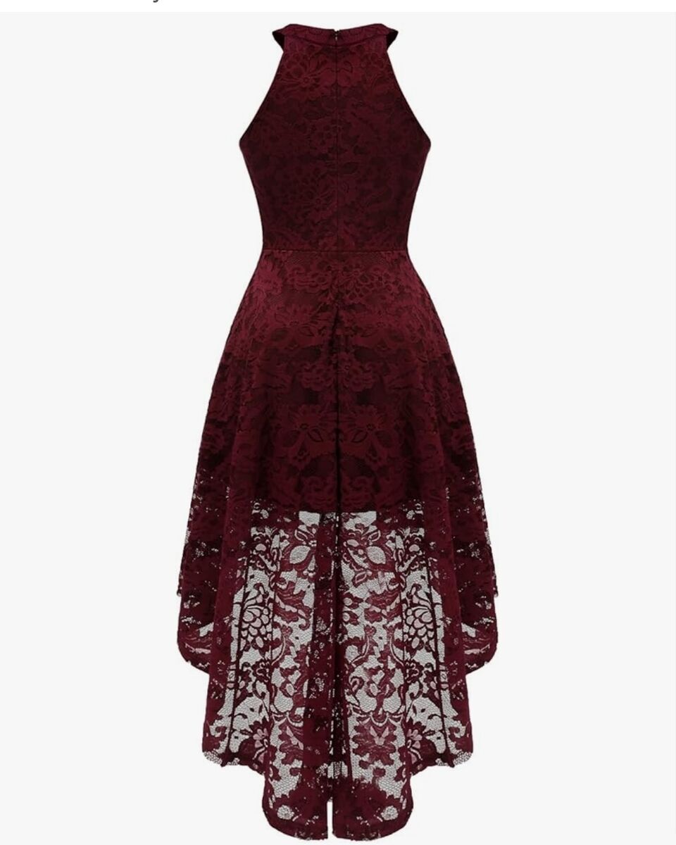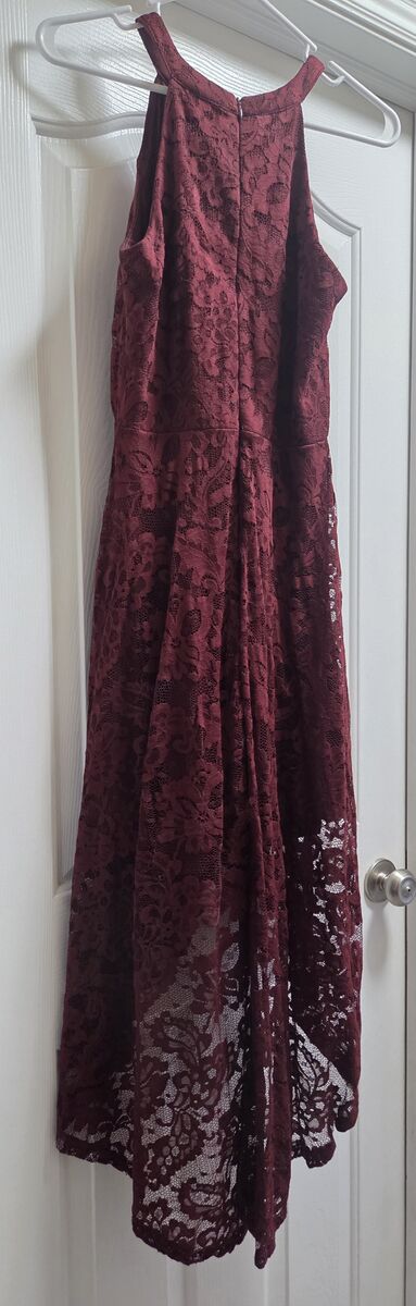 VenmoBrand: Dressystar Size: Large Halter Lace Hi-Lo Burgundy Formal Gown. Worn once, like new. $20.00 or B/O. Shipping paid separately.