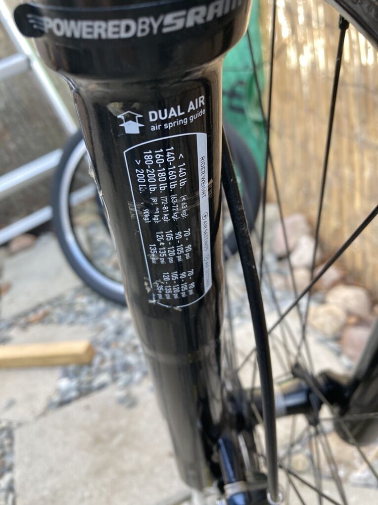 Size small smallest 5’0 with the seat down max height maybe 5’7 the stand over is 29inches from the center of the top tube . Adjustable air fox front and rear suspension with brain system High end Carbon fiber frame No damage such as broken parts or repairs frame is solid . Carbon fiber handlebars SRAM 2x10 speed components Hydraulic disc brakes.
