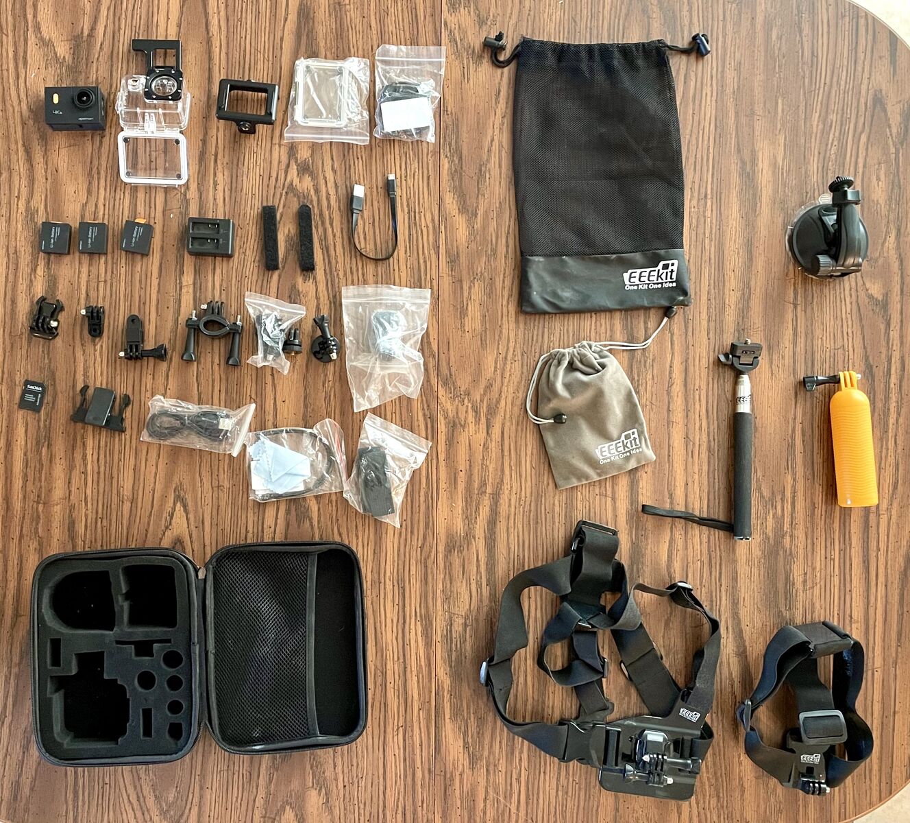 EEEKit Accessories Starter Kit for 4K Wifi Sport Camera. -Head Strap -Chest Harness -Floaty Grip Handle -Car Mount -Selfie Stick -Monopod