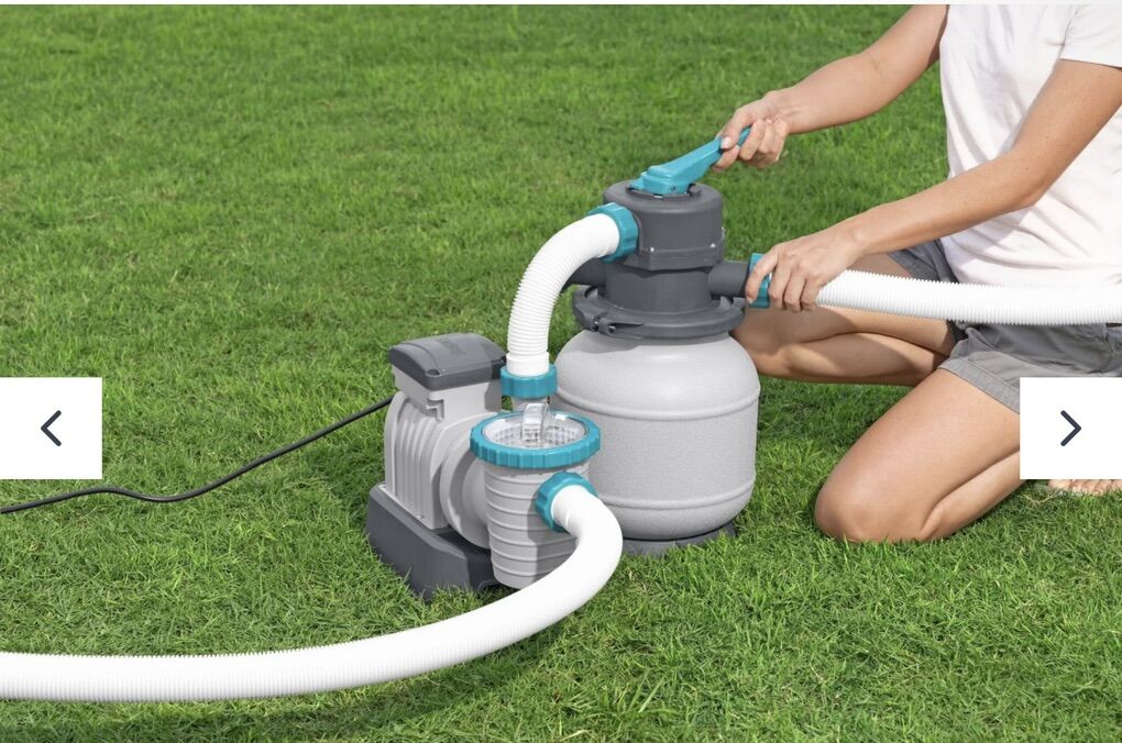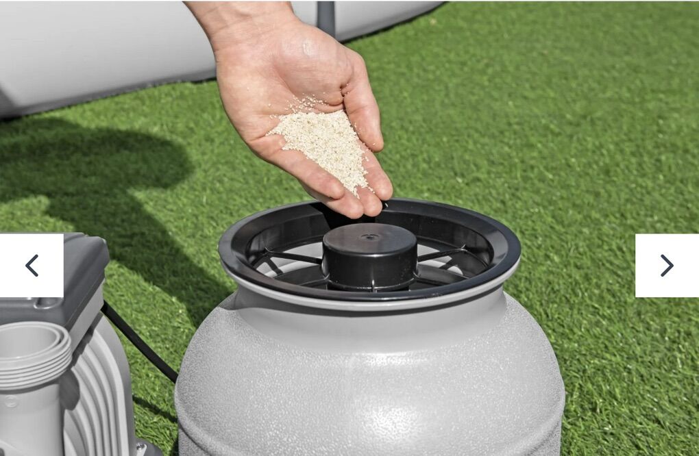 Keep crystal-clear, clean water flowing through your above ground pool with the Bestway® 1,600 gal. Sand Filter Pump! This powerful pump lasts longer, is more environmentally-friendly and requires less maintenance than a traditional filter cartridge pump. It uses either silica sand or Bestway Polysphere™ Pool Filtration Balls (neither included) to filter debris out of your pool, and includes a pre-filter strainer basket to catch larger items and increase the pump's efficiency and longevity. The durable, corrosion-resistant pump comes pre-assembled, so just plug it in and power it up to start seeing an improvement in the filtration of your pool. This sand filter pump is compatible with 300-11,200 gal. (1,100-42,300 L) above ground pools. It also features a 6-position handle to easily switch the filter functions between filter, closed, backwash, rinse, drain and circulate. This easy, low-maintenance pump does the dirty work, so you can focus on making memories with your family! Pump Flow Rate: 1,600 gal./h (6,056 L/h) Compatible with 300-11,200 gal. (1,100-42,300 L) above ground pools Durable, corrosion-resistant filter tank Pre-assembled with a top flange clamp that allows 360˚ rotation for quick and smooth installation Pre-filter strainer catches larger particles to protect the pump impeller and ensure a longer life span Uses approximately 19.8 lbs (9 kg) #20 silica sand, 0.45-0.85 mm or 0.55 lbs (250 g) Polysphere™ Pool Filtration Balls (neither included) Contents: 1 sand filter pump