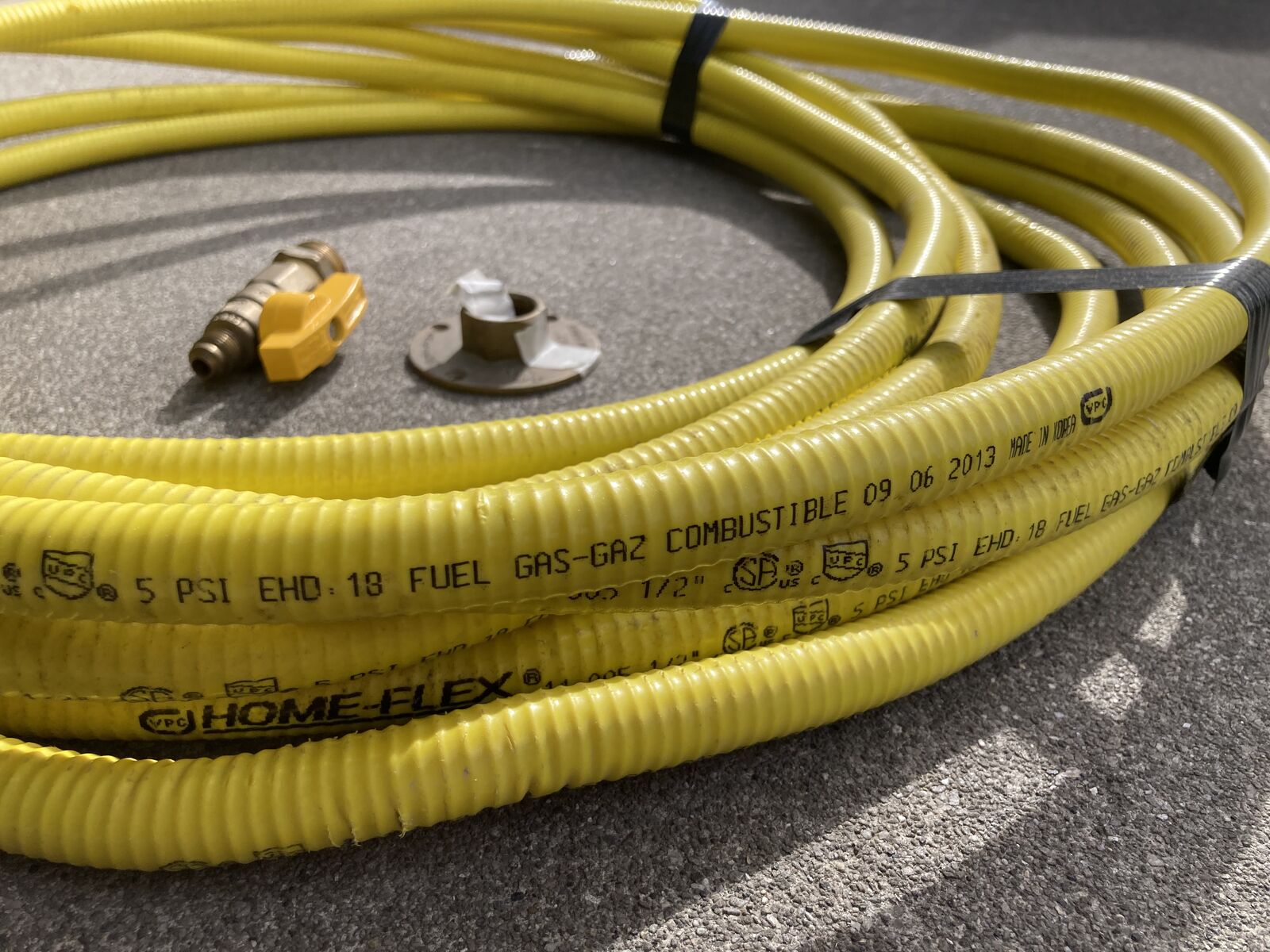 ApplePayWe removed this gas line from our house recently. We installed it for a natural gas fireplace. The length is about 45 feet and I have the floor valve as shown. This is the brand that is sold at Home Depot.