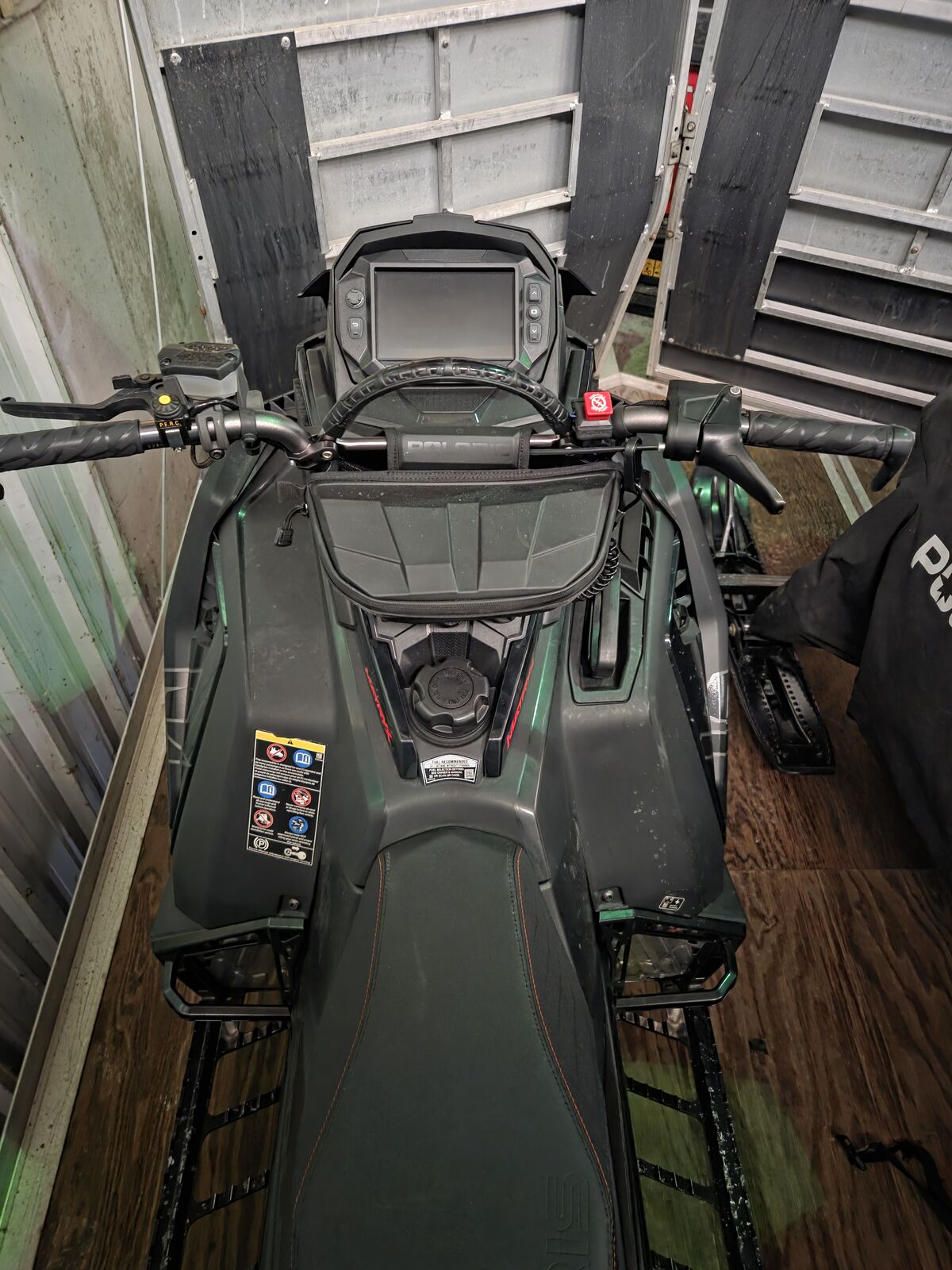 Selling my 2023 Polaris 9R Khaos 165" with 7S screen. Purchased the sled in 2023 with 36 miles on it. It is all stock except for a Diamond S can. I am 74 yrs old and don't ride hard, so all the miles are "old fart" easy miles. My son bought a 9R 155" and when I rode it last week I realized it was much easier for me to manuever, so I've decided to sell my 165" and get a 155". No missing lugs on the track and no damage to the hood or side panels. Does not come with with tunnel bag or handlebar bag.
