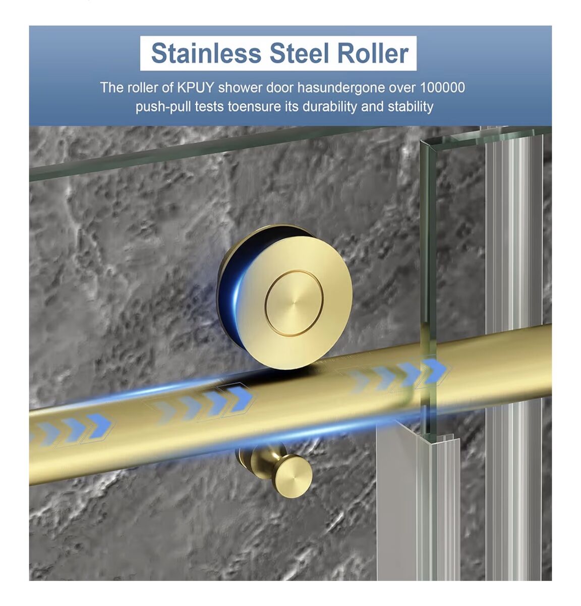 KPUY Frameless Shower Door, 55-60" W x 76" H Sliding Glass Shower Door, 1/4" (6mm) Thick Tempered Clear Glass with Explosion-Proof Film Nano Coating, Stainless Steel Hardware, Brushed Gold