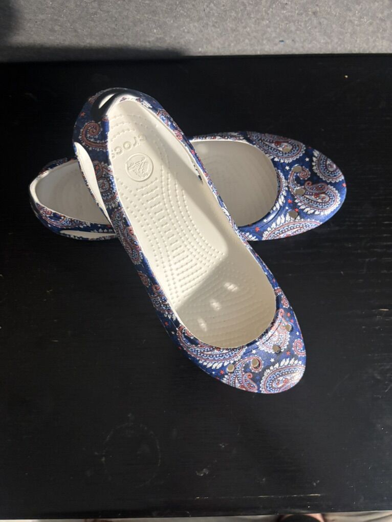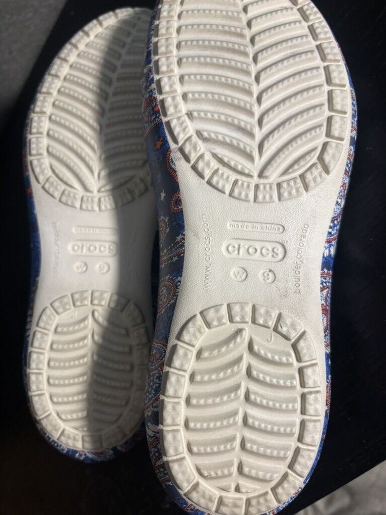 Genuine crocs. Limited edition pair. Unused as far as I know, but still cleaned and sanitized. very little sign of use. Women’s size 9.