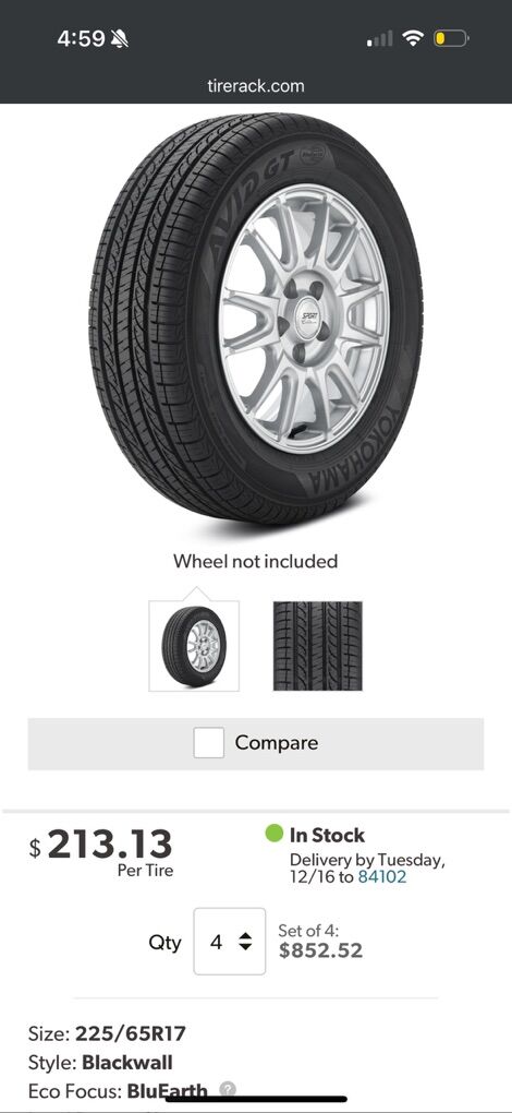 YOKOHAMA AVID GT All Season Car & Crossover Tire in 225/65R17 Drove for 6,458 miles