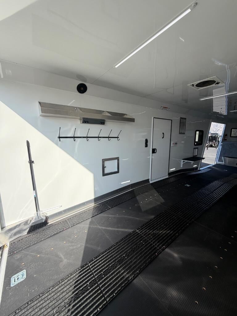 Wide rear ramp for easy loading, spacious interior for multiple sleds, and a durable floor built to handle winter use.