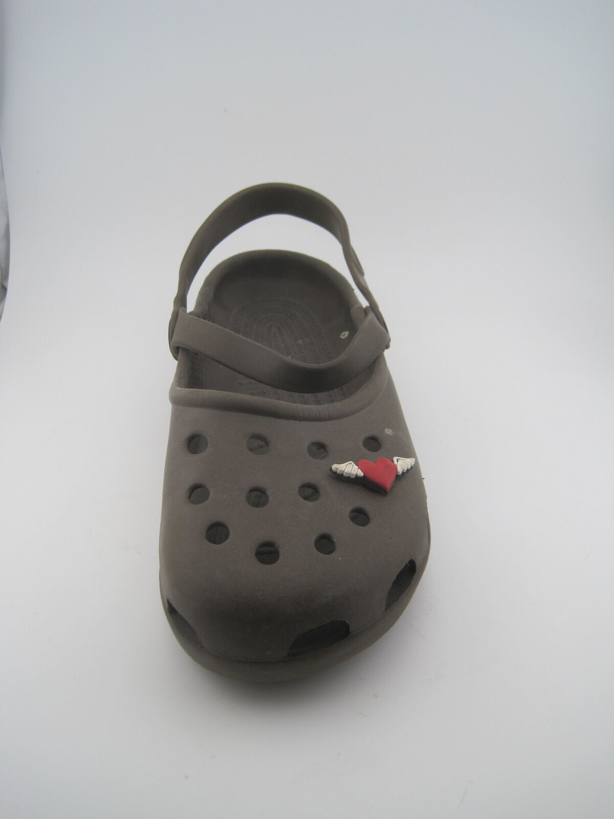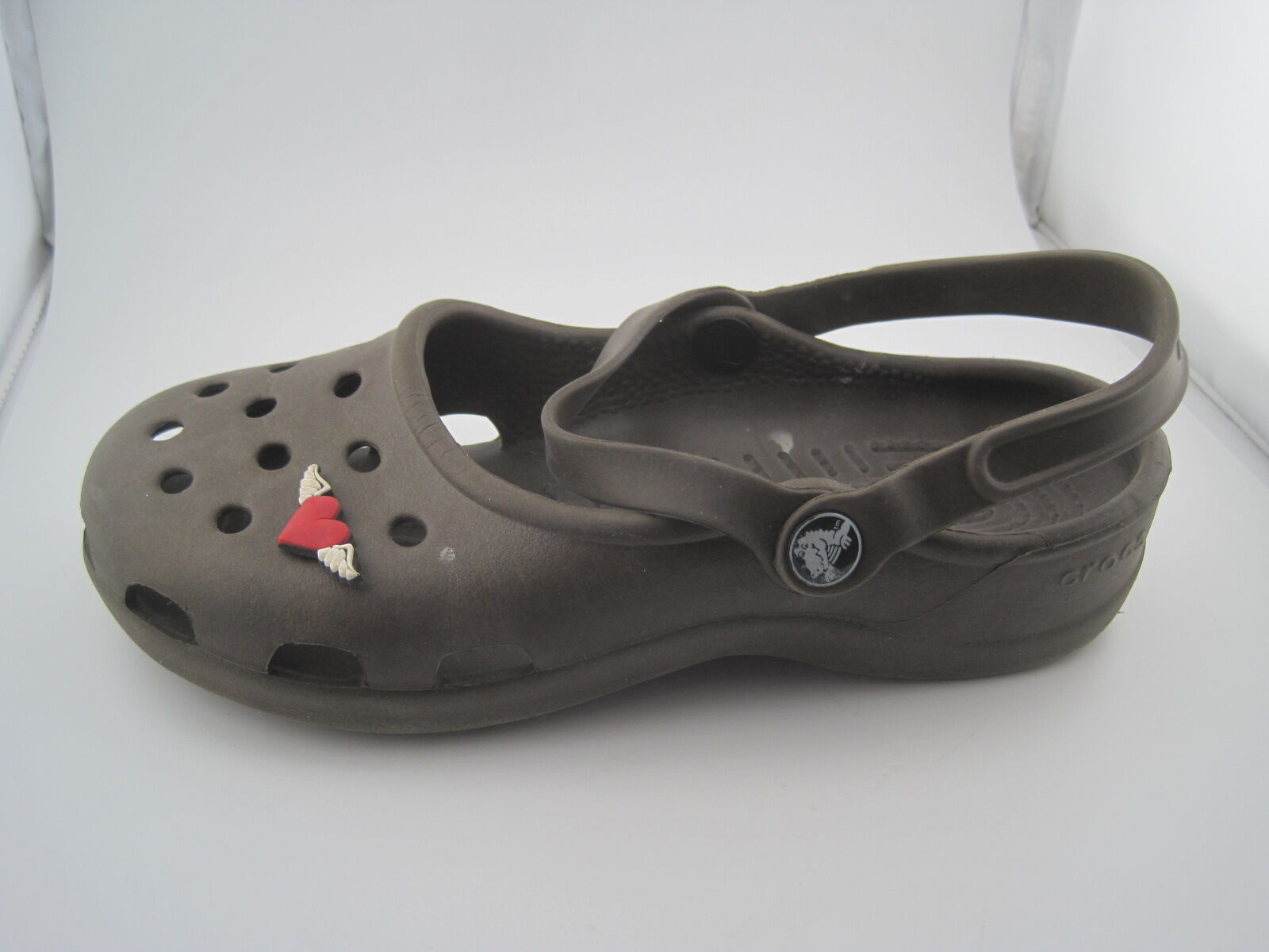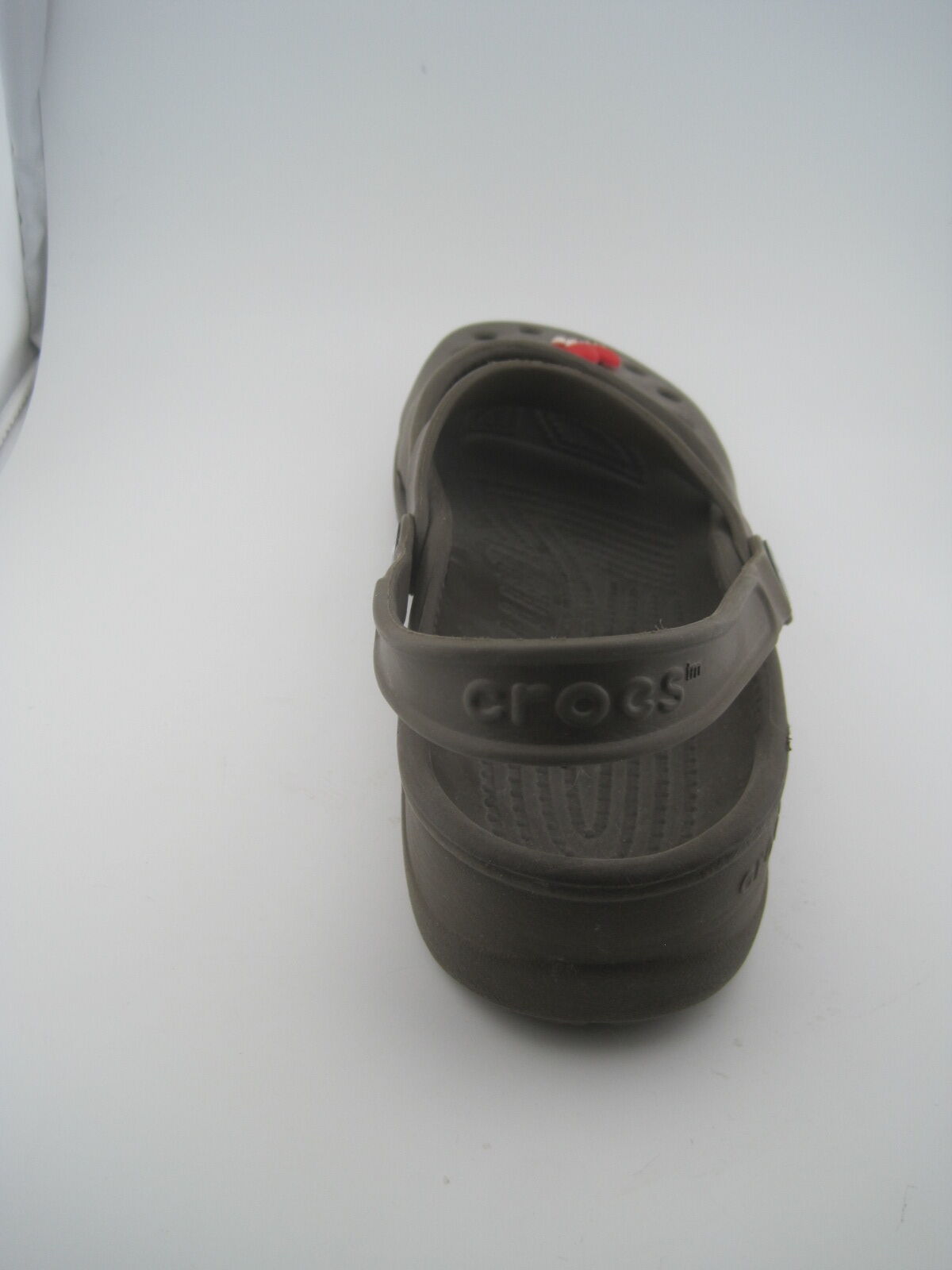 The product is a pair of Crocs Classic Clogs in brown color, designed for women in size 7. These slip-on clogs feature a low top shoe shaft style with a round toe shape, making them perfect for casual and travel occasions during the summer season. The shoes are lightweight, comfortable, and breathable, with an ankle strap for added support. Made of rubber, these Crocs are the classic style with a solid pattern and logo accents, ideal for walking and school activities. The brand Crocs is known for its comfortable and durable footwear, making these clogs a great choice for everyday wear.
