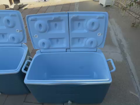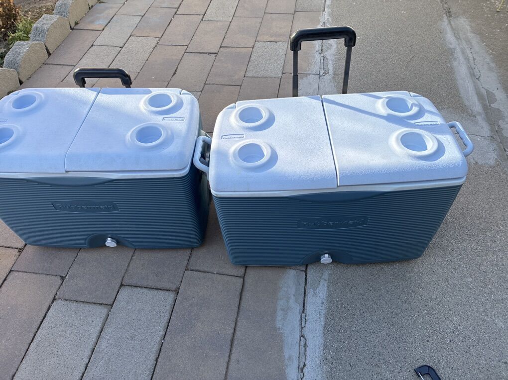 Rubbermaid 60-Quart (Blue) Wheeled Cooler $25 each Excellent condition Text or call 8016379863