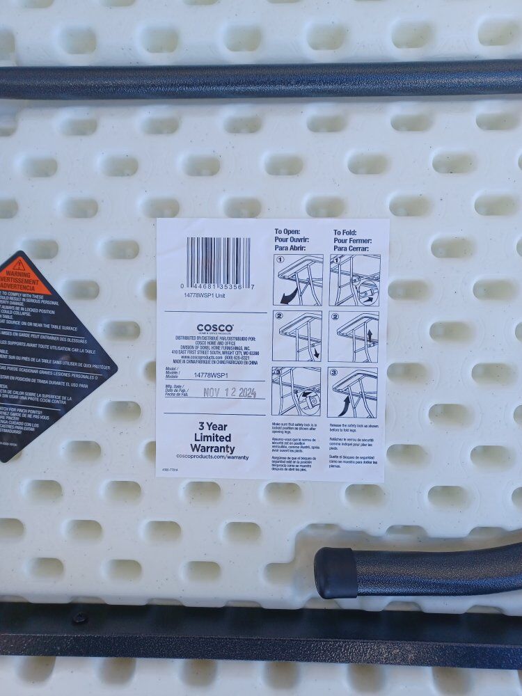 Costco 8 foot centerfold folding table, White brand new any questions please message me