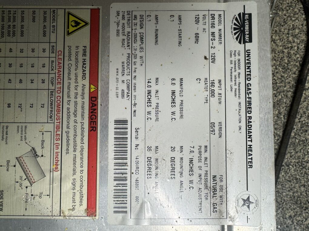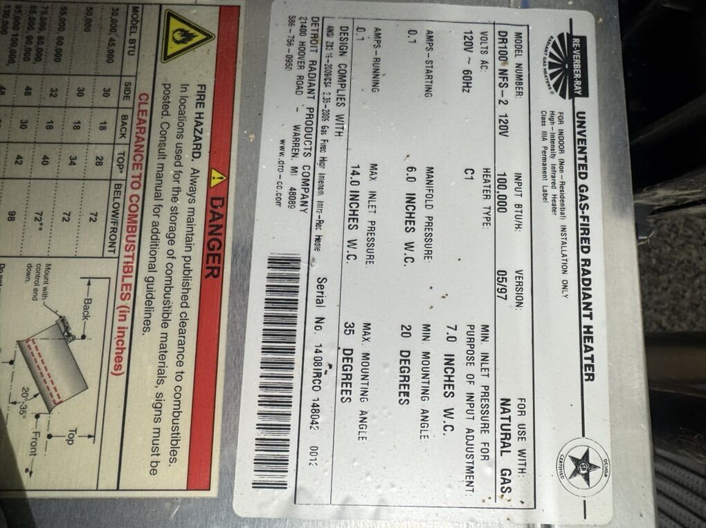Nice used heaters. Nothing wrong with them. Ready to hook into power and natural gas. These heaters are $800-$1000 new.