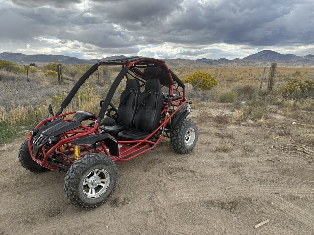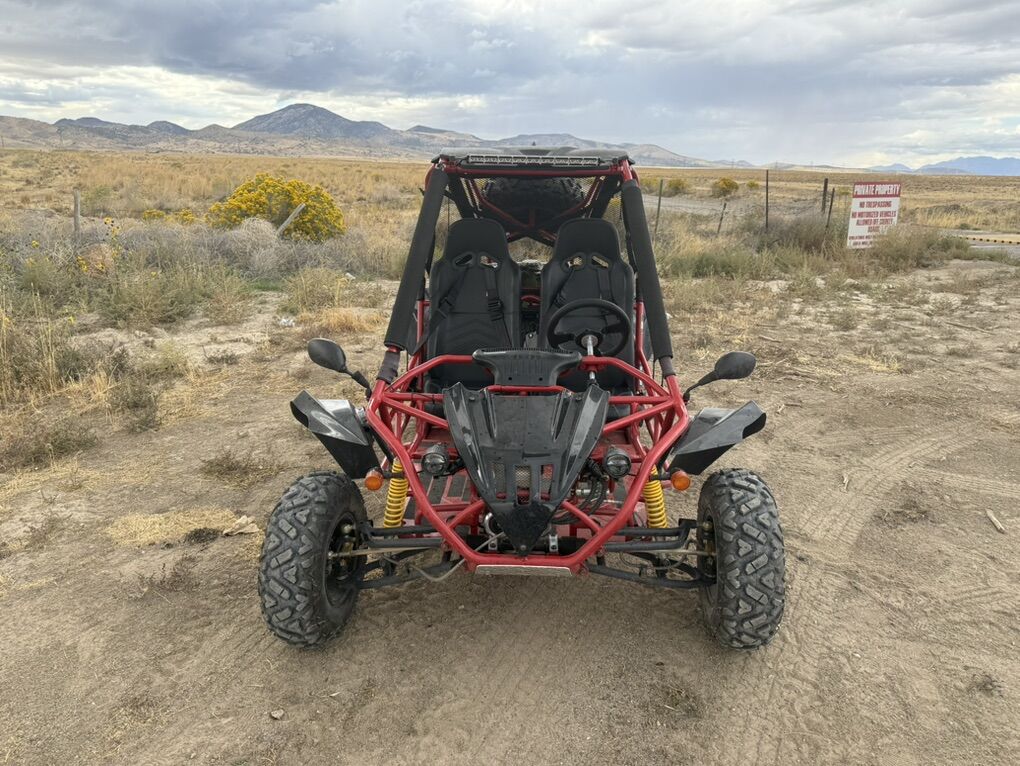 2025yr. Off road go-kart 169cc fuel-injected, 10 horsepower 2 riders up to 5’9” and 350 lbs. Oversized 21-inch front and 22-inch rear tires Complete lighting package that includes LED headlights, turn signals, brake light, and overhead Baja-style lights. 6 in ground clearance, and a 2.6-gallon fuel tank Adjustable Suspension System: Front and rear i Hydraulic Disc Brakes: Front and rear