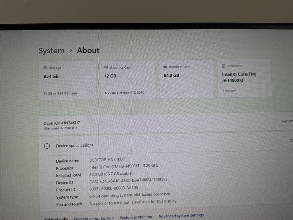 GooglePayAlienWare R16 Aurora INTEL I9 / 14 GEN 64 GB Ram NVIDIA RTX5070 1TB SSD