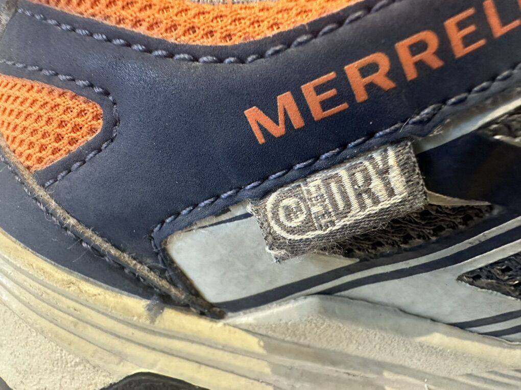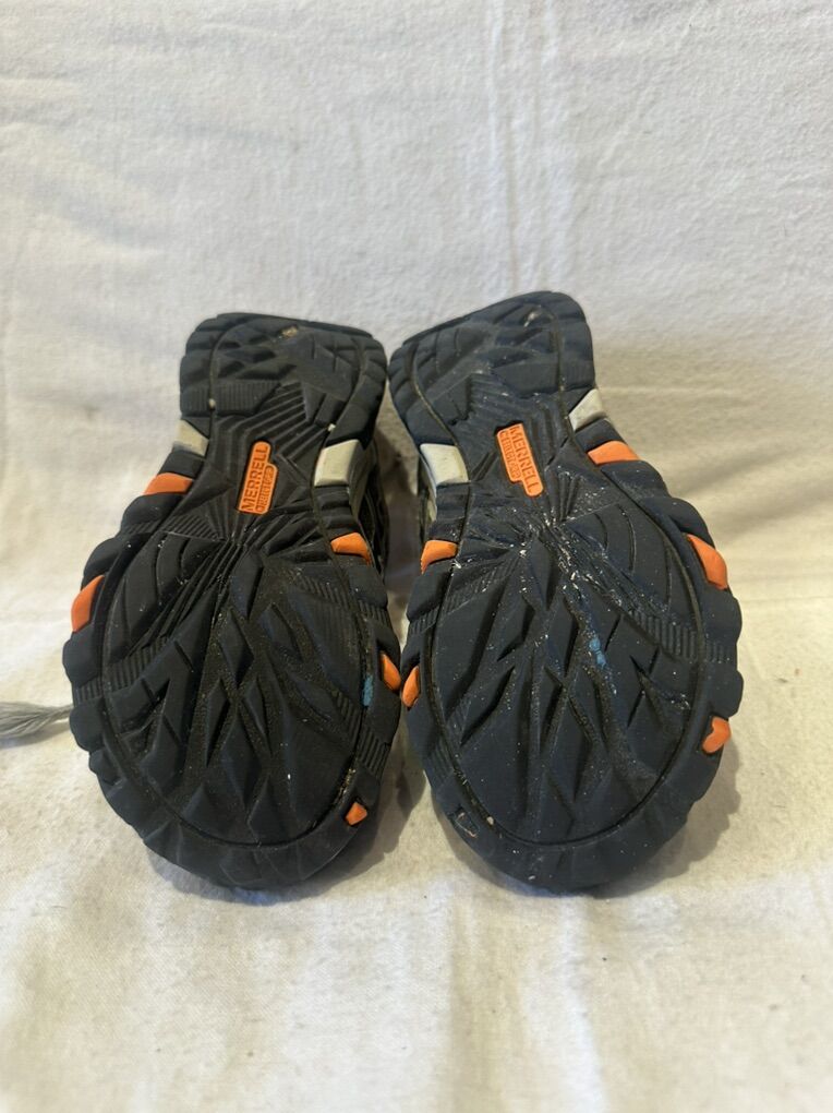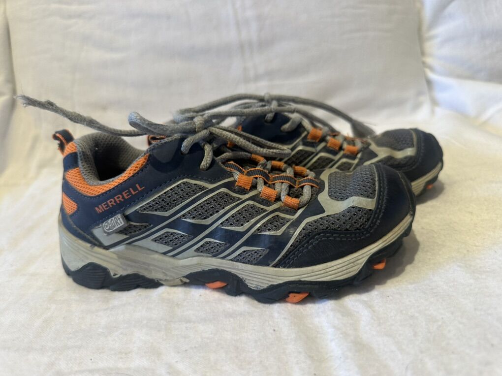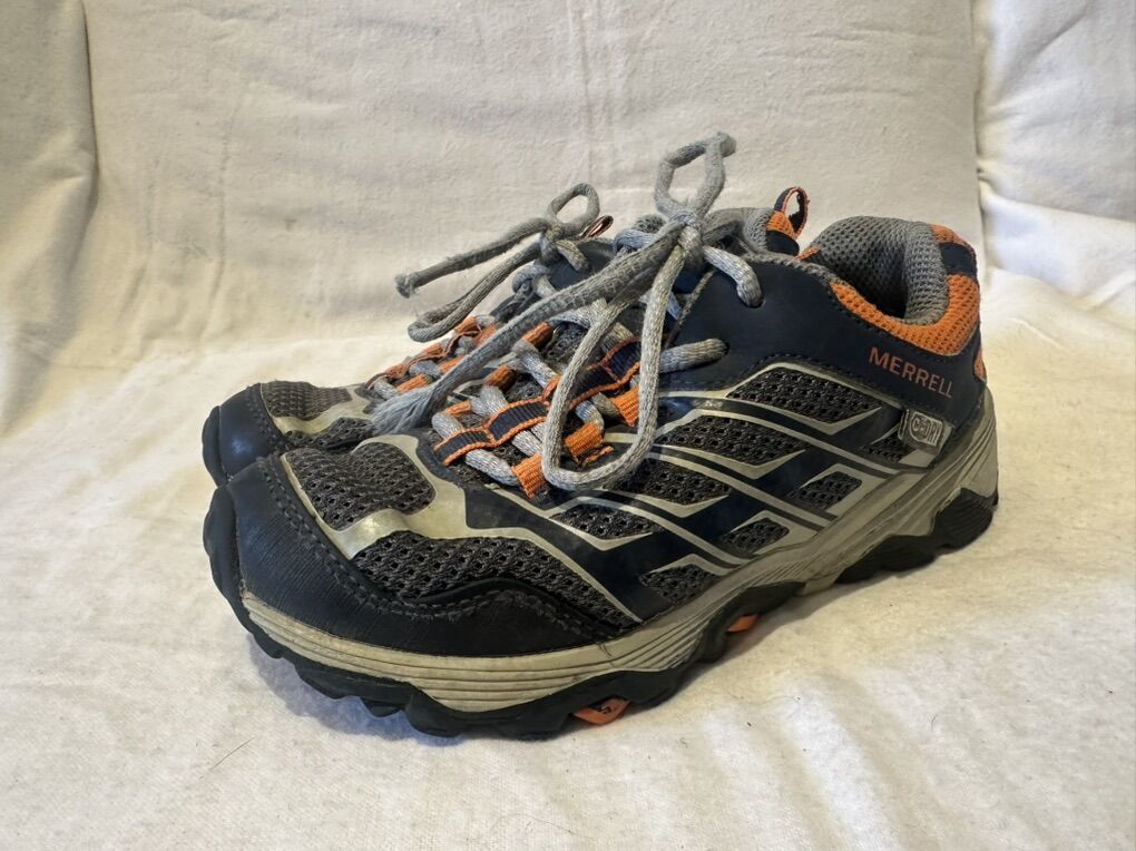 Merrell Moab youth size 1 waterproof, gray with navy and orange trim, hiking shoes. These are in good condition, see photos for details. I take cash or Venmo, but cash is preferred. Text is best. 8012014446. Check out my other ads for additional sizes and styles.