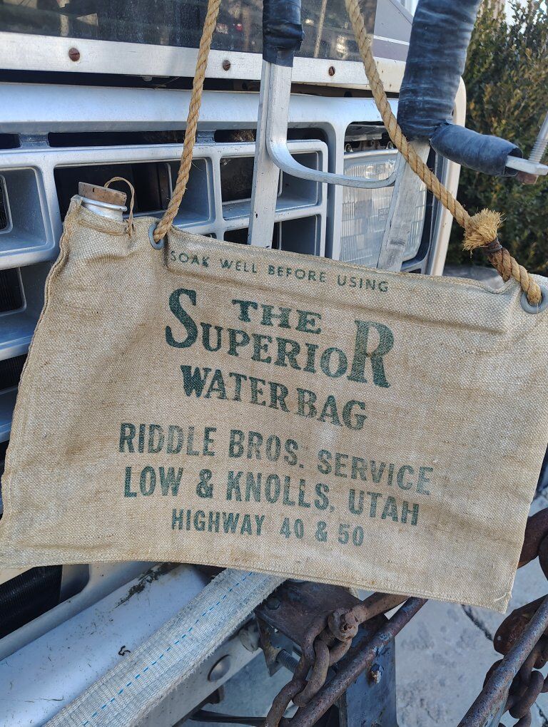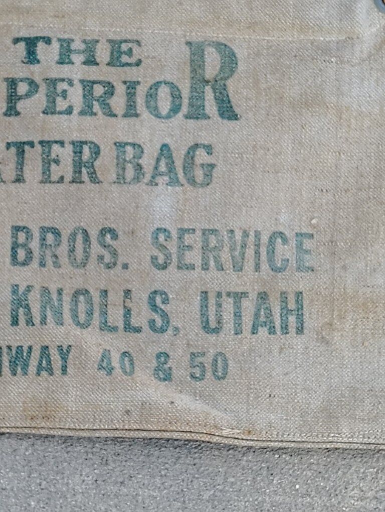 very rare Utah collector advertising water bag best one I've ever seen in the best condition never seen this one before looks like probably unused like mint condition made in the 1940s and 50s best one I've ever had. $175 firm price on this one pretty much for a collectors. cash or venmo for sale in West valley. nice as it gets a lot more rare than most this one is one-sided old Jeep radiator canvas water bag.