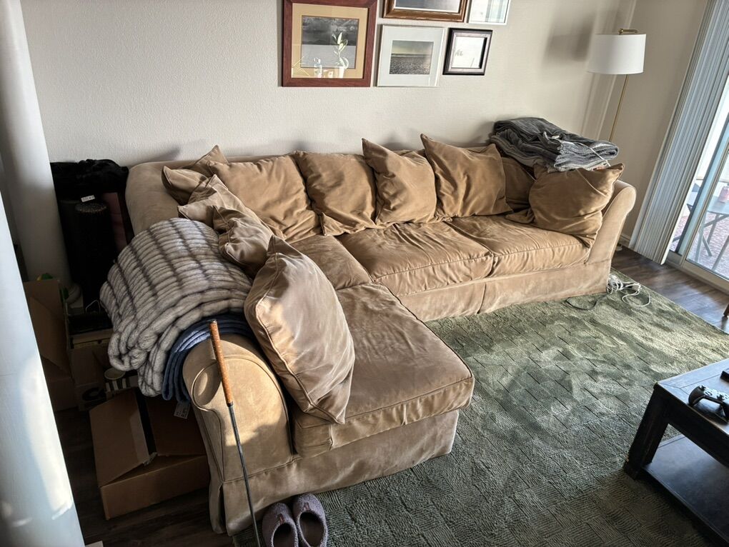 VenmoVery big couch, Tan sectional (2 pieces), used but has a lot of life left, very comfortable, easy to move considering the size (I live on the 4th floor), dimensions in inches in last picture, will help move