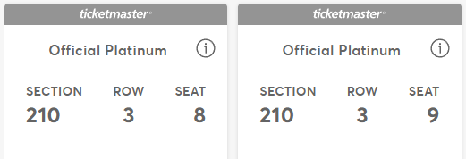 Venmo2 tickets Section 210 Row 3! Phish is only playing 9 shows. This will be a great Saturday night. Asking $999 each as they are Official Platinum.