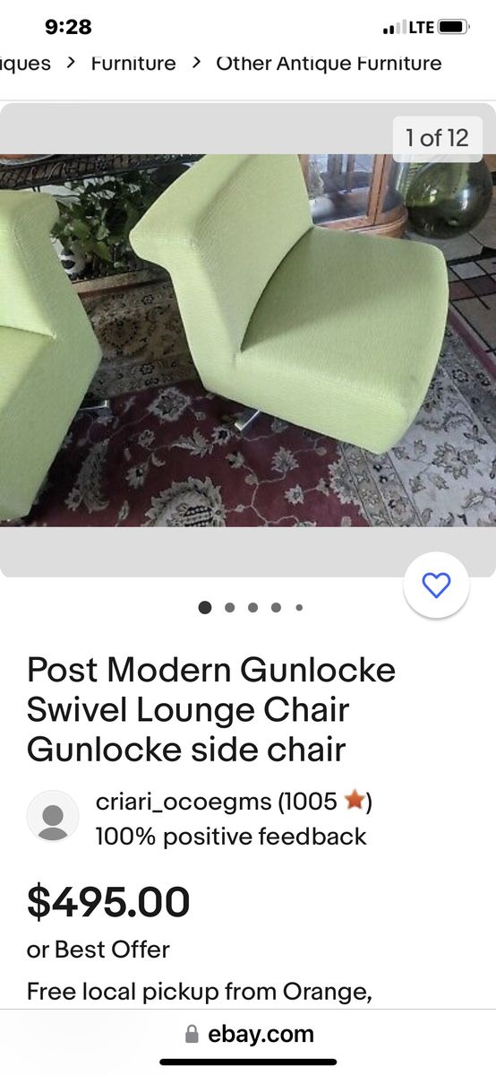All original, Bauhaus, Lime Green swivel chairs by Gunlocke Chair Company. When Gunlocke connects, they hit it out of the park. Fantastic color. Pics don't capture it.These are amazing and will not show up again in SLC. Ever. They rarely show up anywhere. No matter how you spin them they always return to their original position. The upholstery integrity is excellent. Two of them have some water stains just where you can see in pics. Nowhere else. I've reduced these chairs dramatically for quick sell. That's not including the 100.00 discount I took off for steam cleaning. Luckily it's only from water. When I first got them, the water stain had not set in and came out with a steam cleaner. Yesterday, I checked again whether or not the stain would release from the fabric. With a slightly damp rag you wipe the edge of discoloration. If it breaks up, you're good. If not, they've set in and are permanent. Voila, on both chairs the stains have not set and will come out with a basic steam cleaner. Originally had five and new owners have had the same success cleaning a few months back. Otherwise these are in excellent shape. I've only got two left! Just sold the third one and the woman left ecstatic.