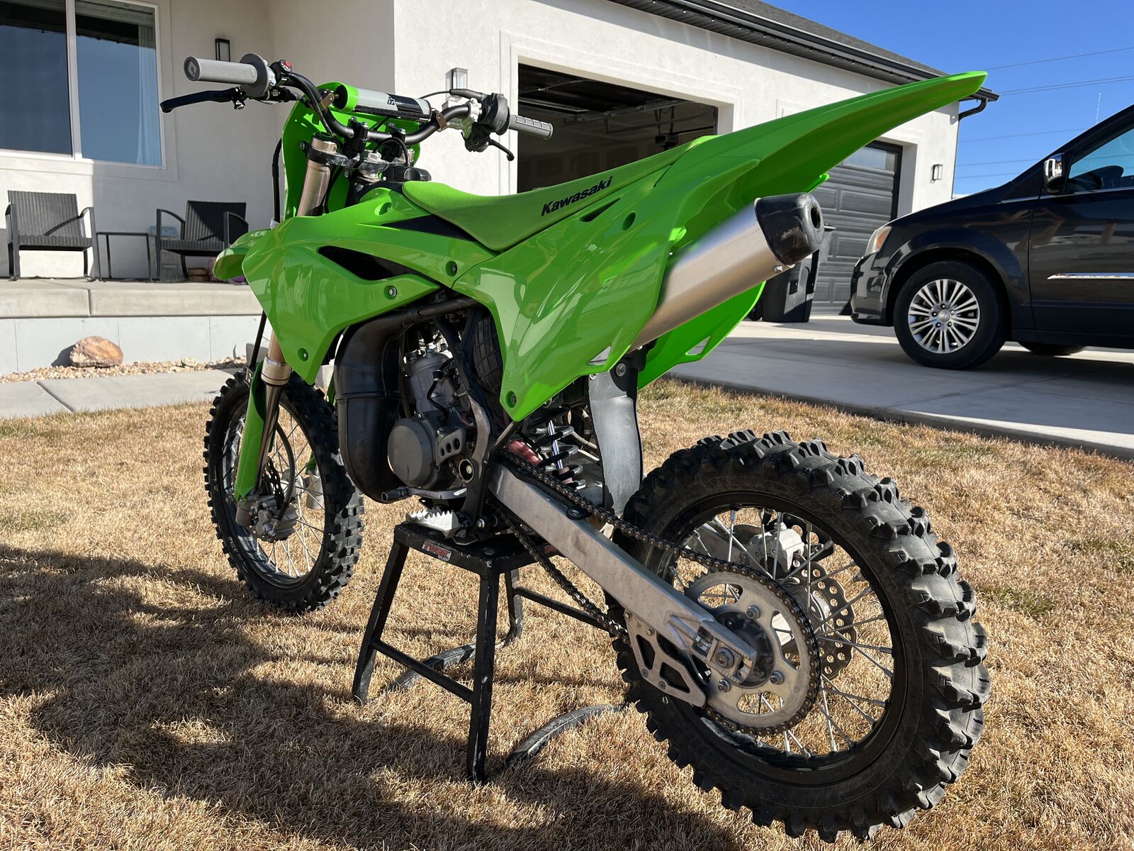 Very clean 2024 Kawasaki KX85 that has been well maintained and cared for. Upgrades include brand-new plastics, bars, grips, levers, and clutch. Has a Dunlop MX14 rear tire. Bike runs strong, shifts smooth, and has been a solid, reliable ride. Always serviced and kept in a garage. We are only getting rid of it so my son can get a 250. It's been a great bike.