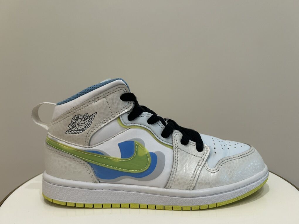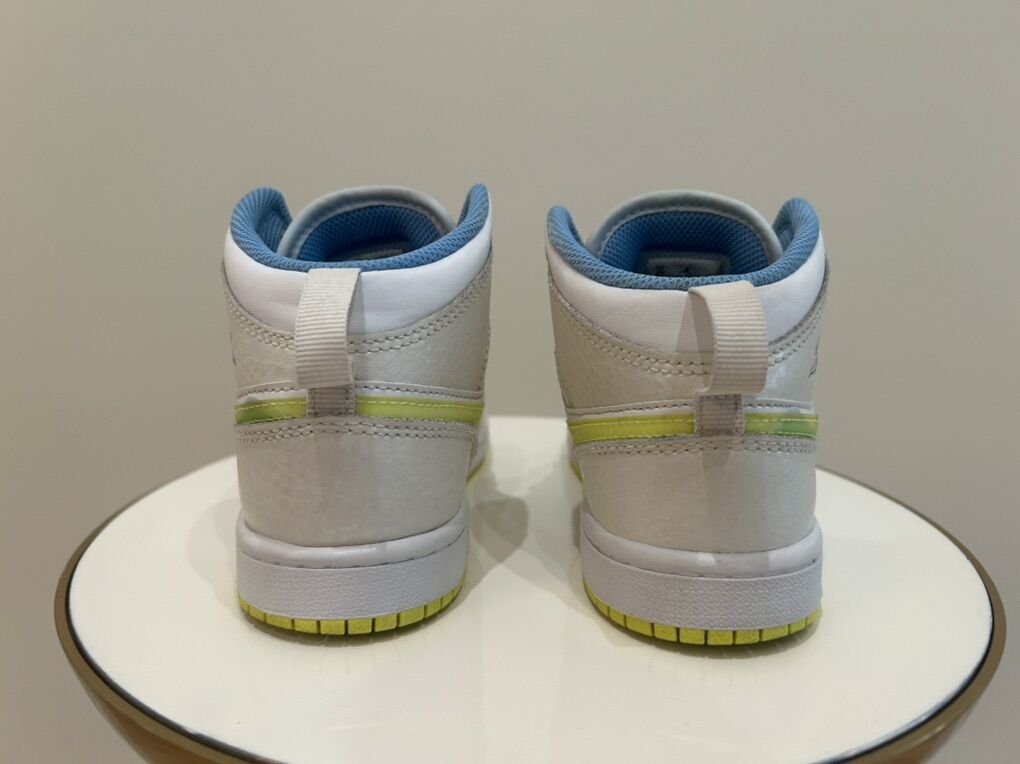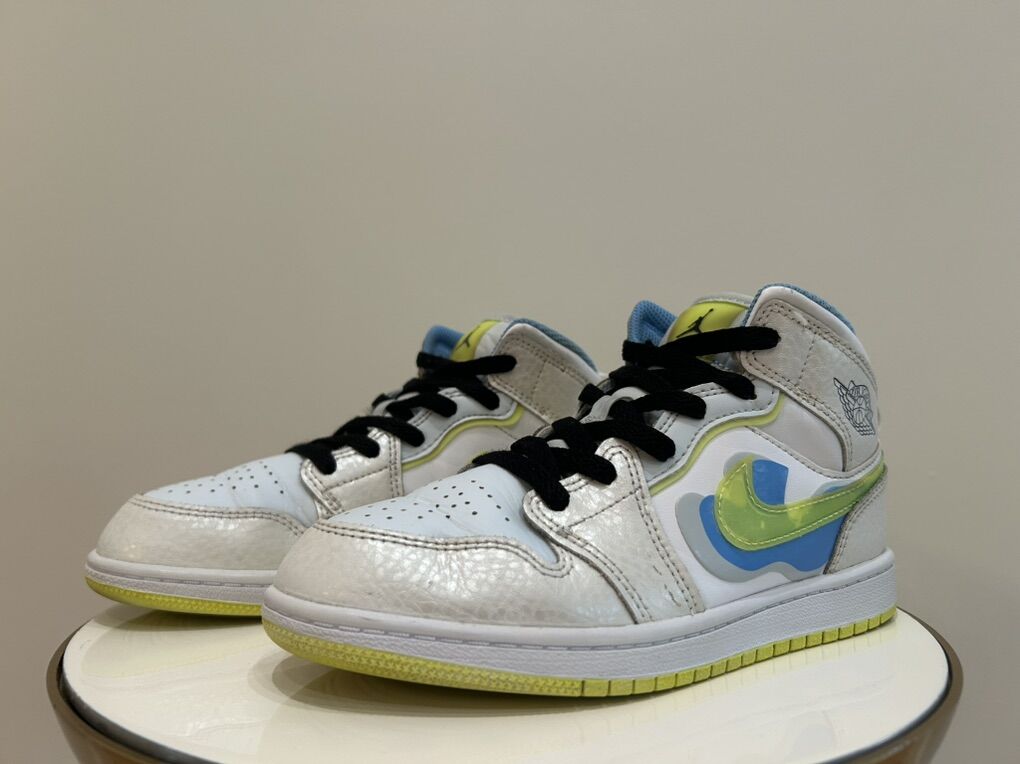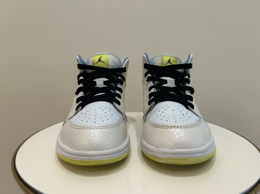 ApplePaySUPER SUPER clean pair of Nike Air Jordan 1, size 2, white/blue/highlighter color. $45 OBO takes them home!!!