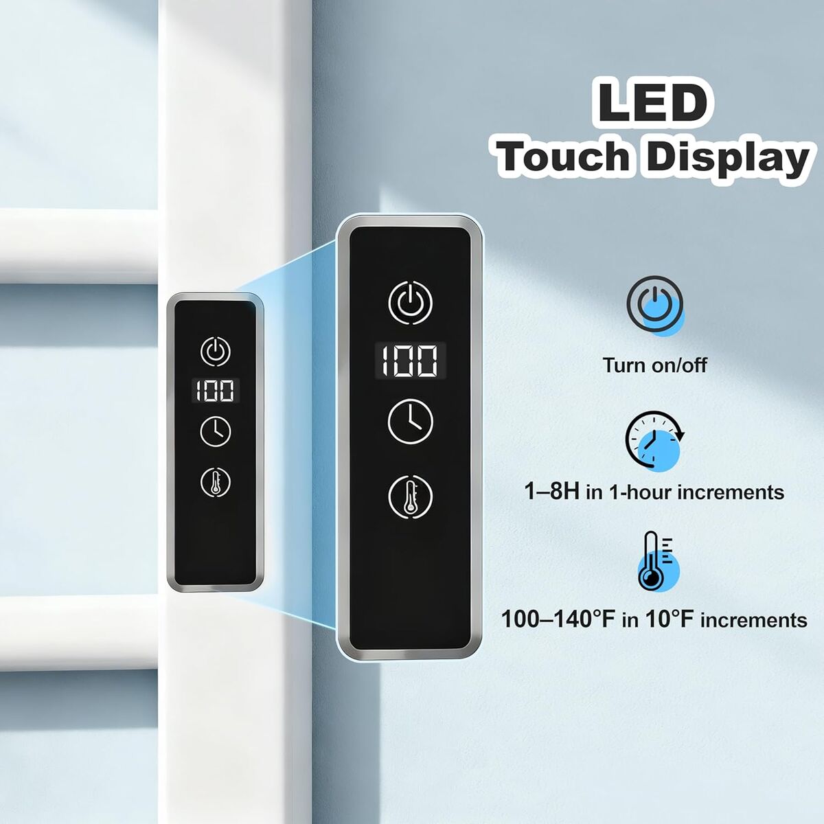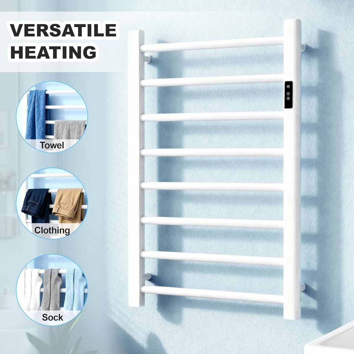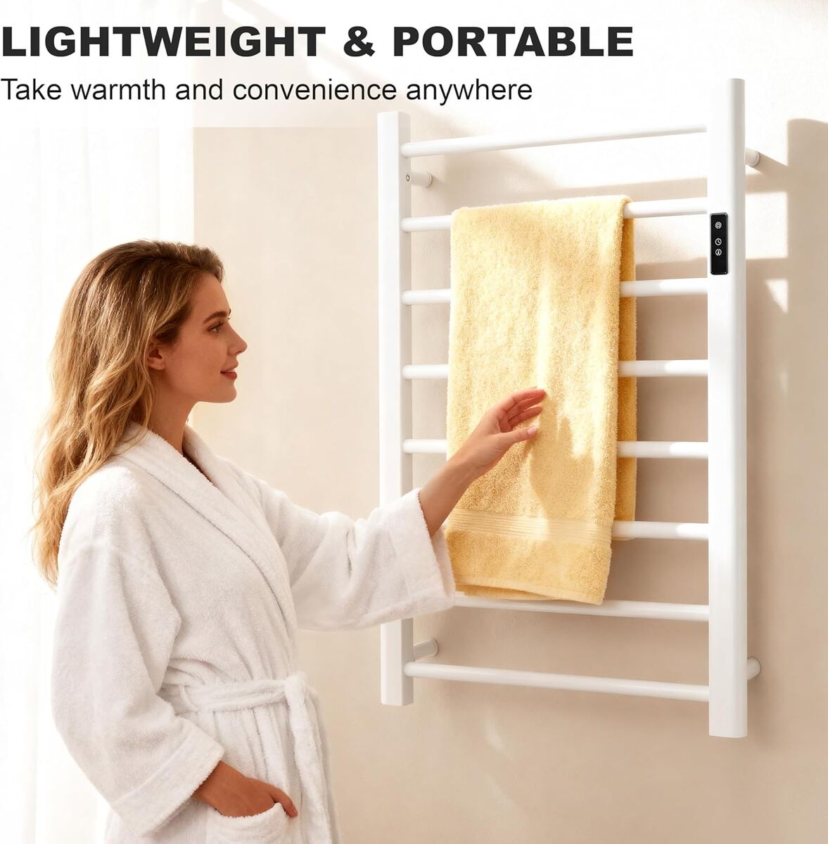 ApplePayHeated Towel Warmer Rack for Bathroom, IPX4 Waterproof Towel Rack Warmer with Timer 1-8 H & Temp Control 100-140°F, Heated Towel Rack Freestanding & Wall Mounted, 8 Bars, White