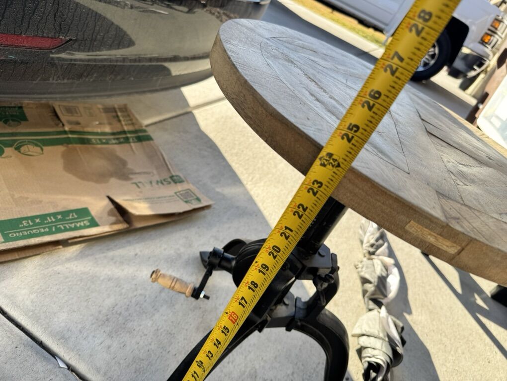 VenmoI have 2 tables, 1 is big 3ft across the other is smaller about 2ft across. The table legs and base is really cool they are full metal really heavy duty. They are adjustable in height. The table tops are pretty warped and need to be redone or replaced but the base is worth the money alone.