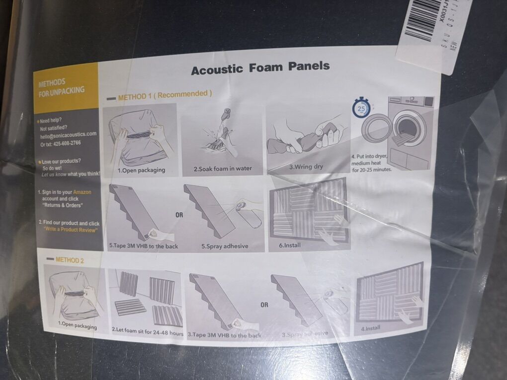 ApplePaySonic acoustic foam panels. Labelled as panels but possibly the corner pieces. I can’t tell without opening. But they seem to measure 7x12 which would be the corner sizes.