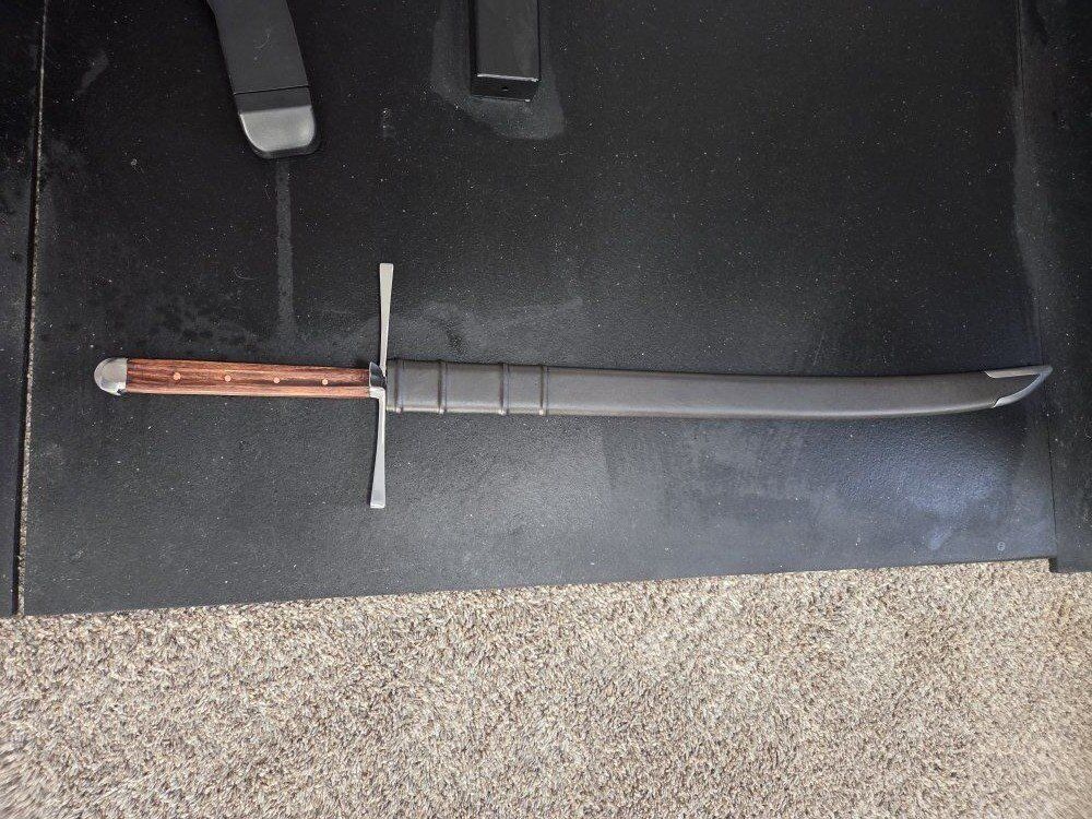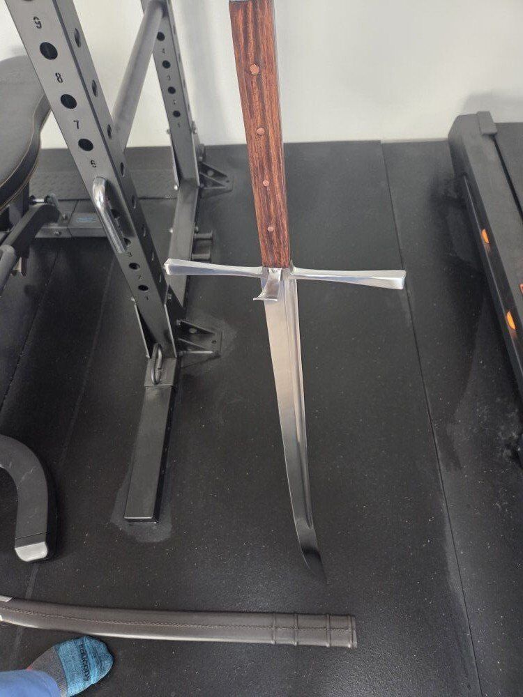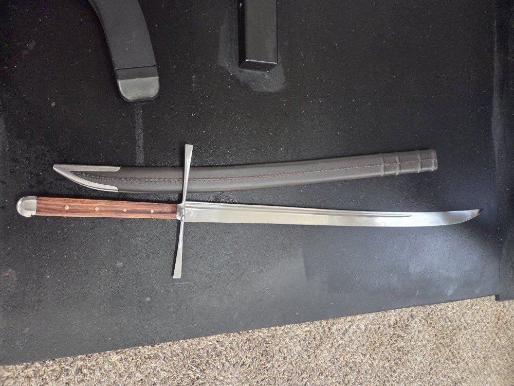 Venmo$300 each or $1,100 for all four. The Kriegsmesser, or “War Knife” is Cold Steel’s® new variation on the popular Grosse Messer. It features a traditional Nagel or nail to protect the outside of the hand instead of the side ring on the Grosse Messer. The blade is made from high carbon steel with a hard spring temper and comes fully sharpened. The upswept point is ideal for cutting and slashing, and, due to its distal taper and three-quarter length fuller, it is fast and nimble in the hand.