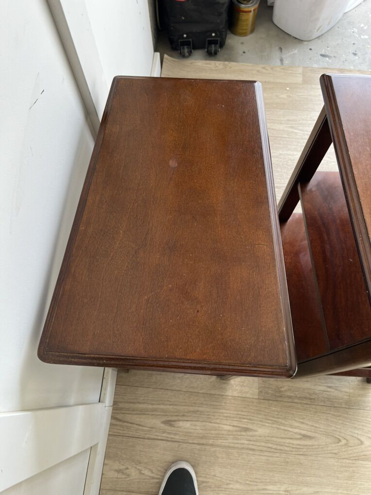 VenmoSet of side tables (trapezoid) Dimensions: Top 14” x 20” x 10.75”x 20” Tall 23.5”