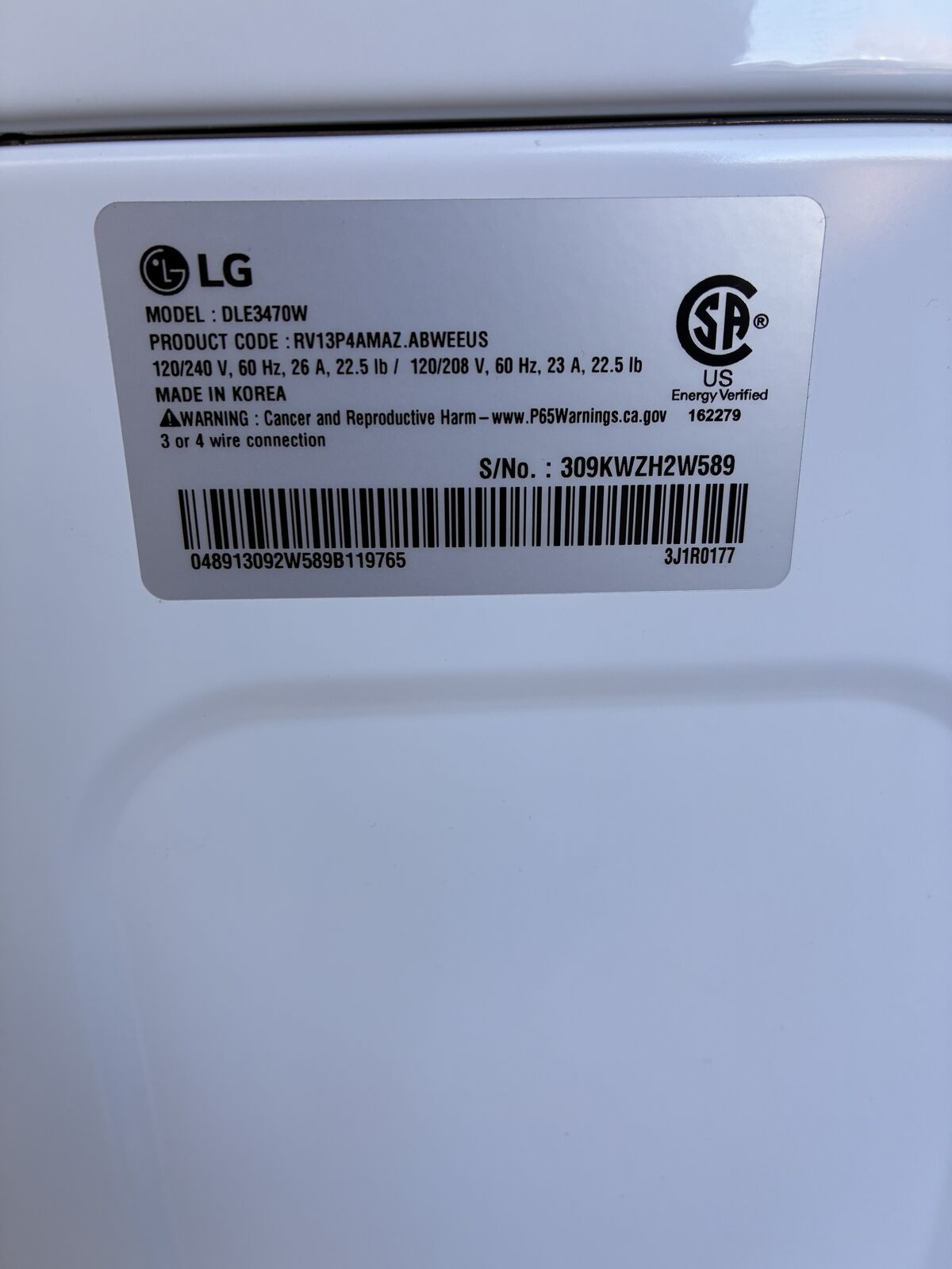 Front load LG electric stackable dryer.