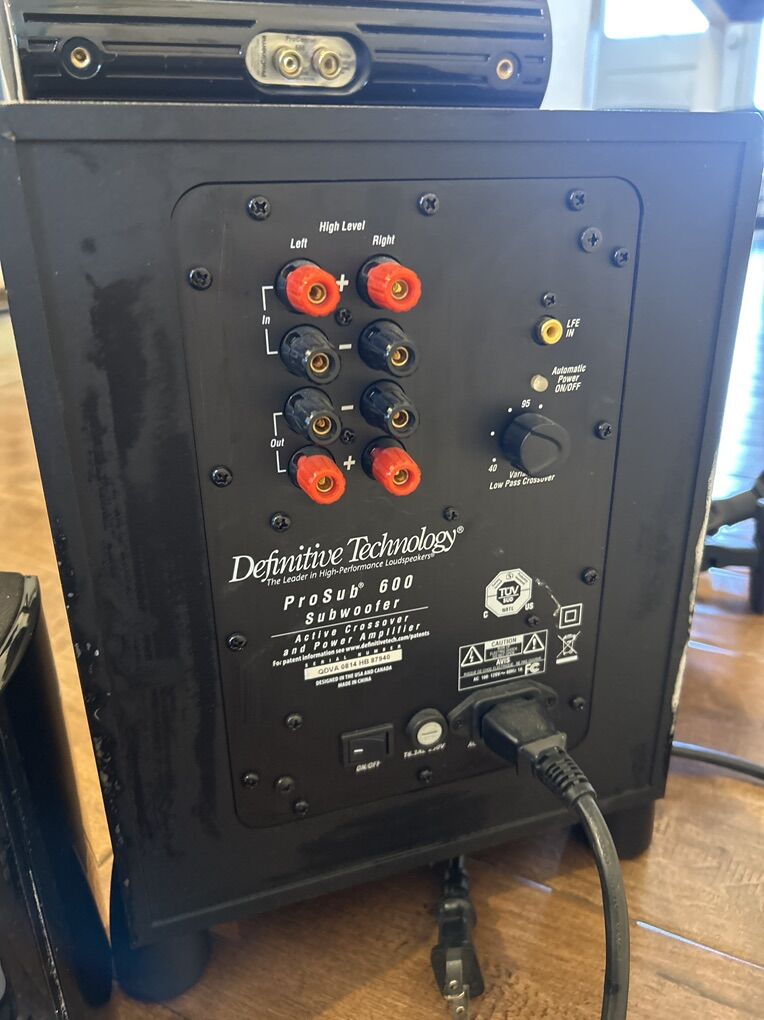 Venmoscription: 5.1 surround sound speaker system removed during a home theater remodel. Includes 5 speakers and powered subwoofer.