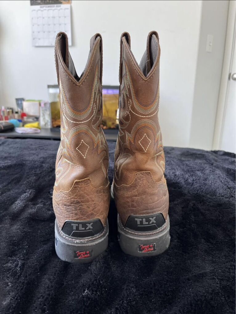 ApplePayMens Tony Lama Boots Size- 8EE They are waterproof Been worn a couple times. In good condition no stains or odors. I got them a couple years ago and have only been worn to parties. Selling because I haven’t worn them in a while, they are just sitting in my closet and someone else could use them! $100 OBO