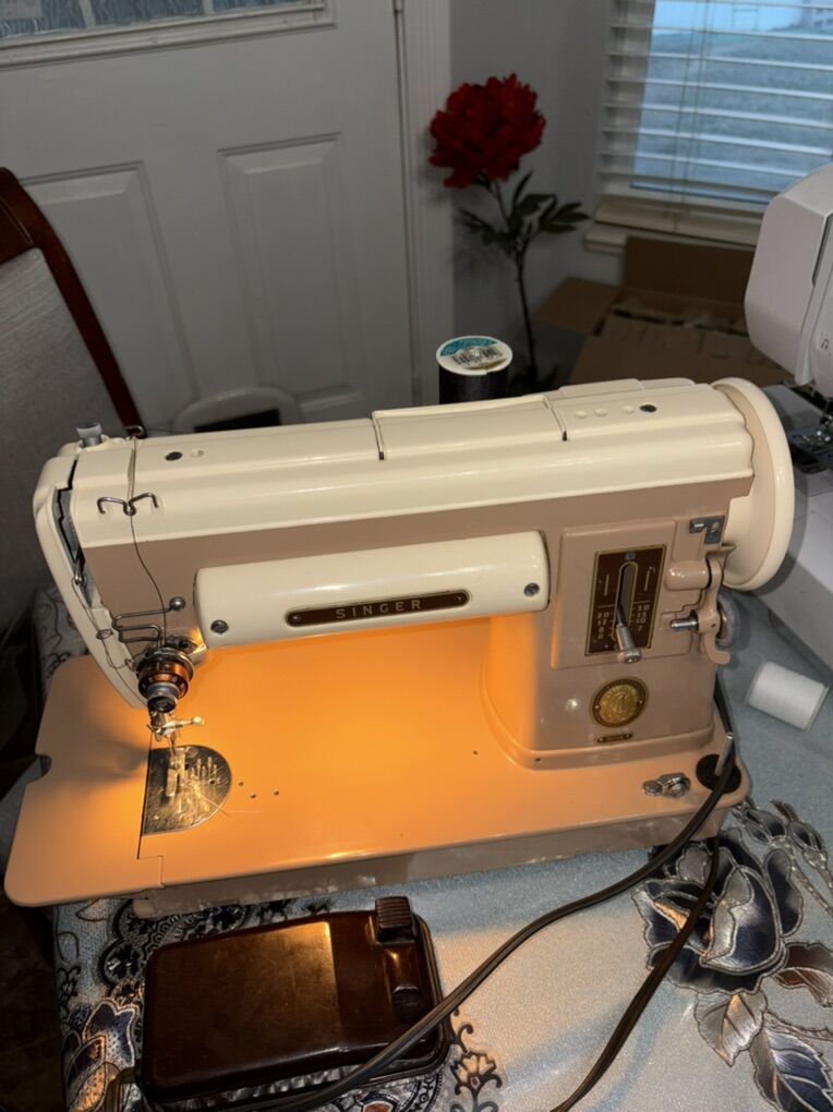 Singer sewing machine model 301A very good conditions looks new ,works very good, has working foot peddle and original box but the box has small damages and visible marks