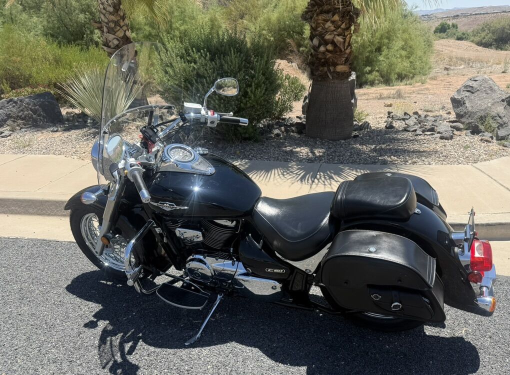 The 2018 Suzuki Boulevard C50 is a mid-size cruiser featuring a liquid-cooled, 805cc (50 cubic inch), 45-degree V-twin engine, 5-speed transmission, and shaft drive. It produces 53 horsepower, weighs 611 lbs. (curb), and features classic styling with a 27.6-inch seat height, making it designed for comfortable, long-distance riding.Engine & DrivetrainEngine: 4-stroke, SOHC, 45-degree V-twin.Displacement: 805cc ((49.1\text{\ cu.\ in.})).Fuel System: Suzuki Fuel Injection with SDTV (Suzuki Dual Throttle Valve).Transmission: 5-speed constant mesh.Final Drive: Shaft drive.Exhaust: Staggered dual-chrome exhaust.Chassis & SuspensionFront Suspension: Telescopic, coil spring, oil damped.Rear Suspension: Link-style, single shock, 7-way adjustable preload.Front Brake: Single hydraulic disc.Rear Brake: Mechanical drum.Front Tire: 130/90-16 M/C 67H.Rear Tire: 170/80-15 M/C 77H