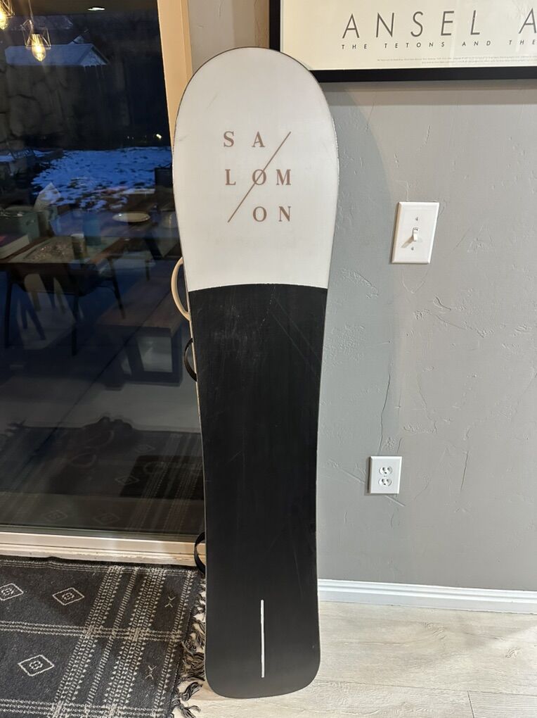 I have this 152cm Salomon Bellevue women’s snowboard for sale. It’s in good shape and comes with some Union trilogy S/M bindings. The nose has a little top sheet chip.