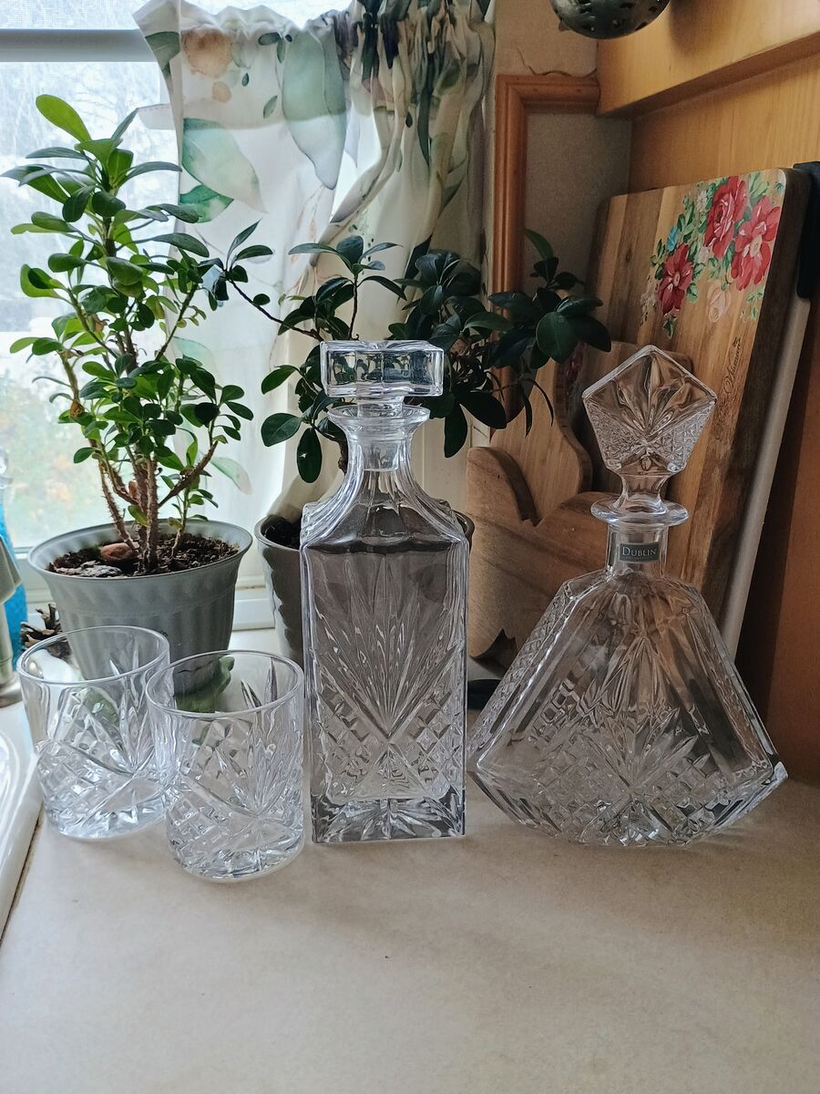 PayPalBeautiful collectible genuine Crystal decanter and two glasses. Brand new in original box. Regularly $39