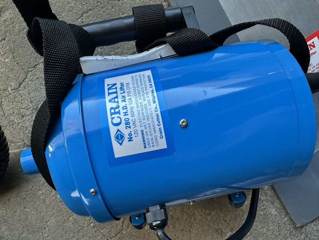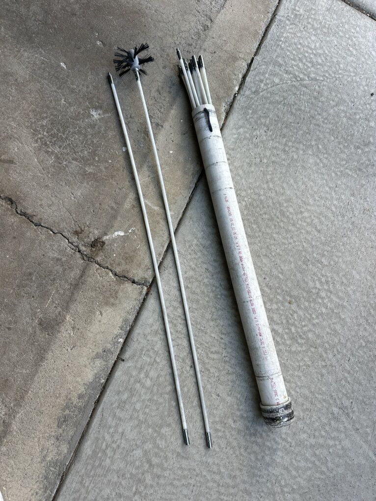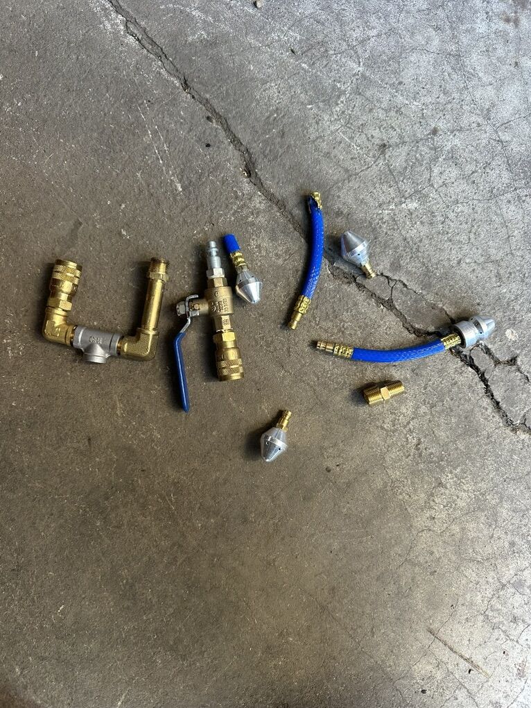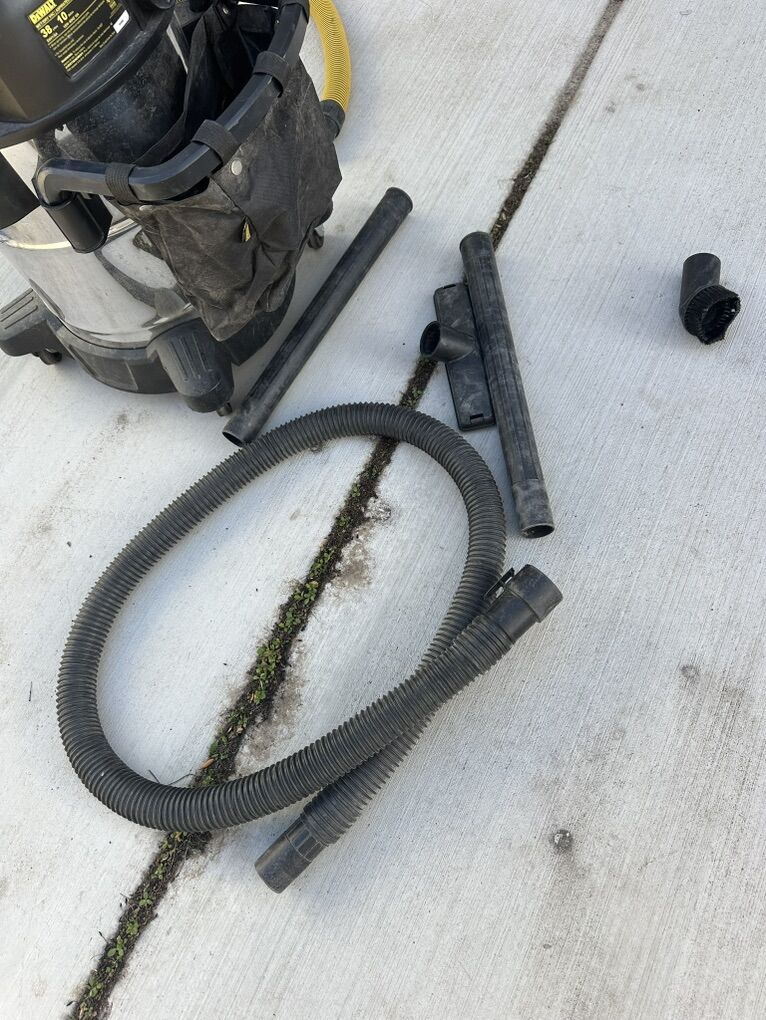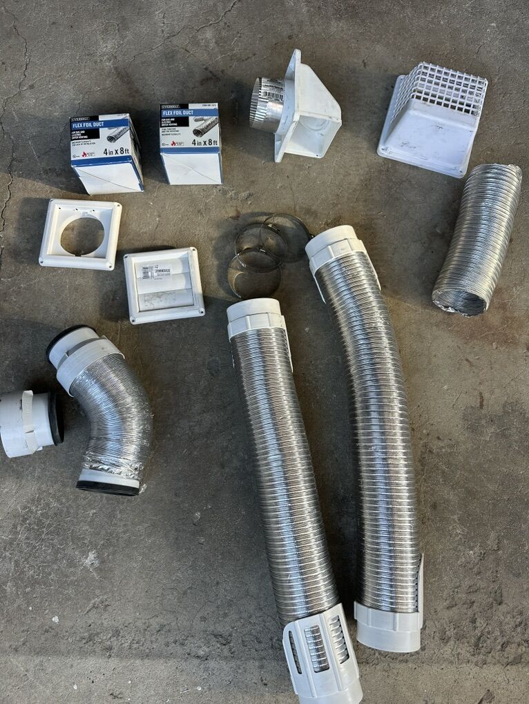 Included is; Air compressor. Several air hoses with dryer vent cleaning attachments. Vacuums. Flexible dryer vent cleaning rods. Misc dryer vent cover and hose fittings Air speed anemometer Appliance mover Extension cord