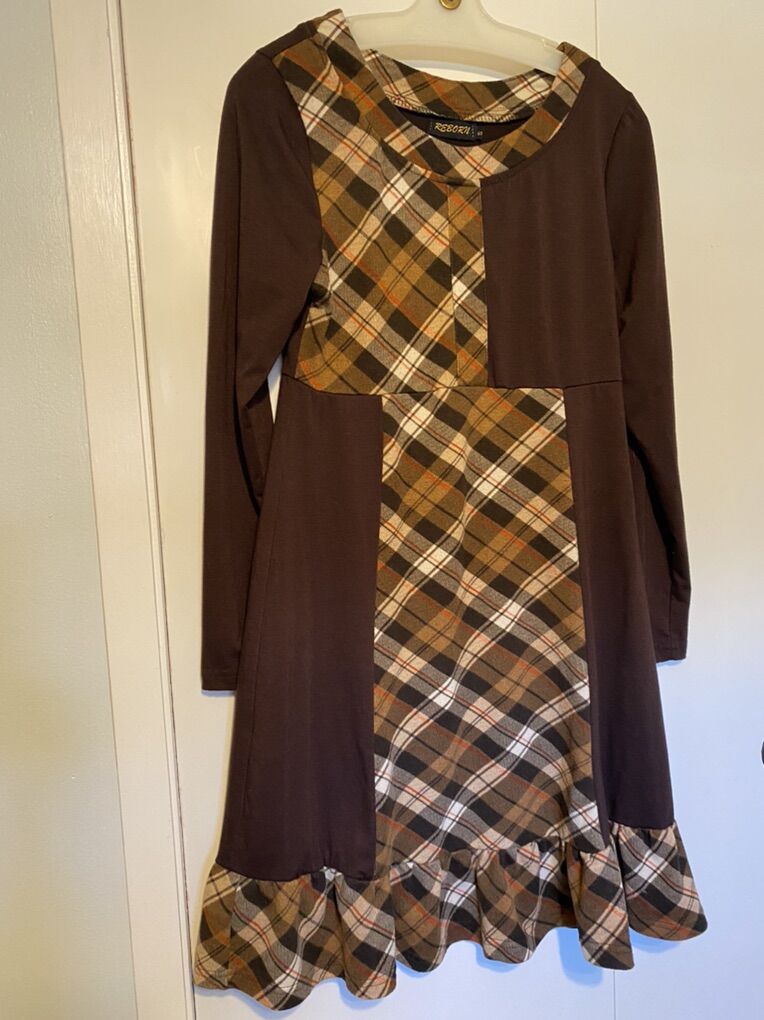 One green dress size 2 p. $20. One brown plaid dress top S petite. $6. One purple plaid shirt dress/top. S Size 6.? Cash only. Near BYU stadium. Cash head.