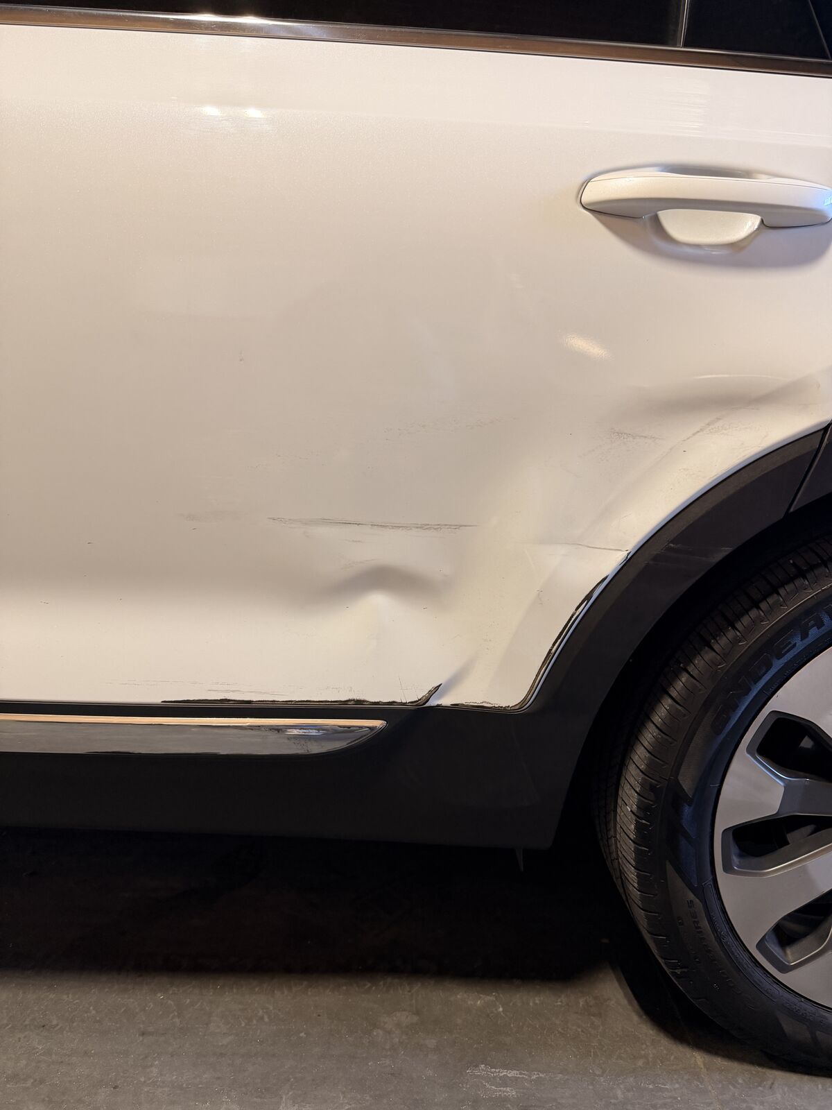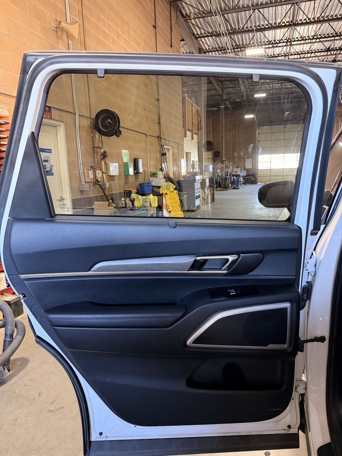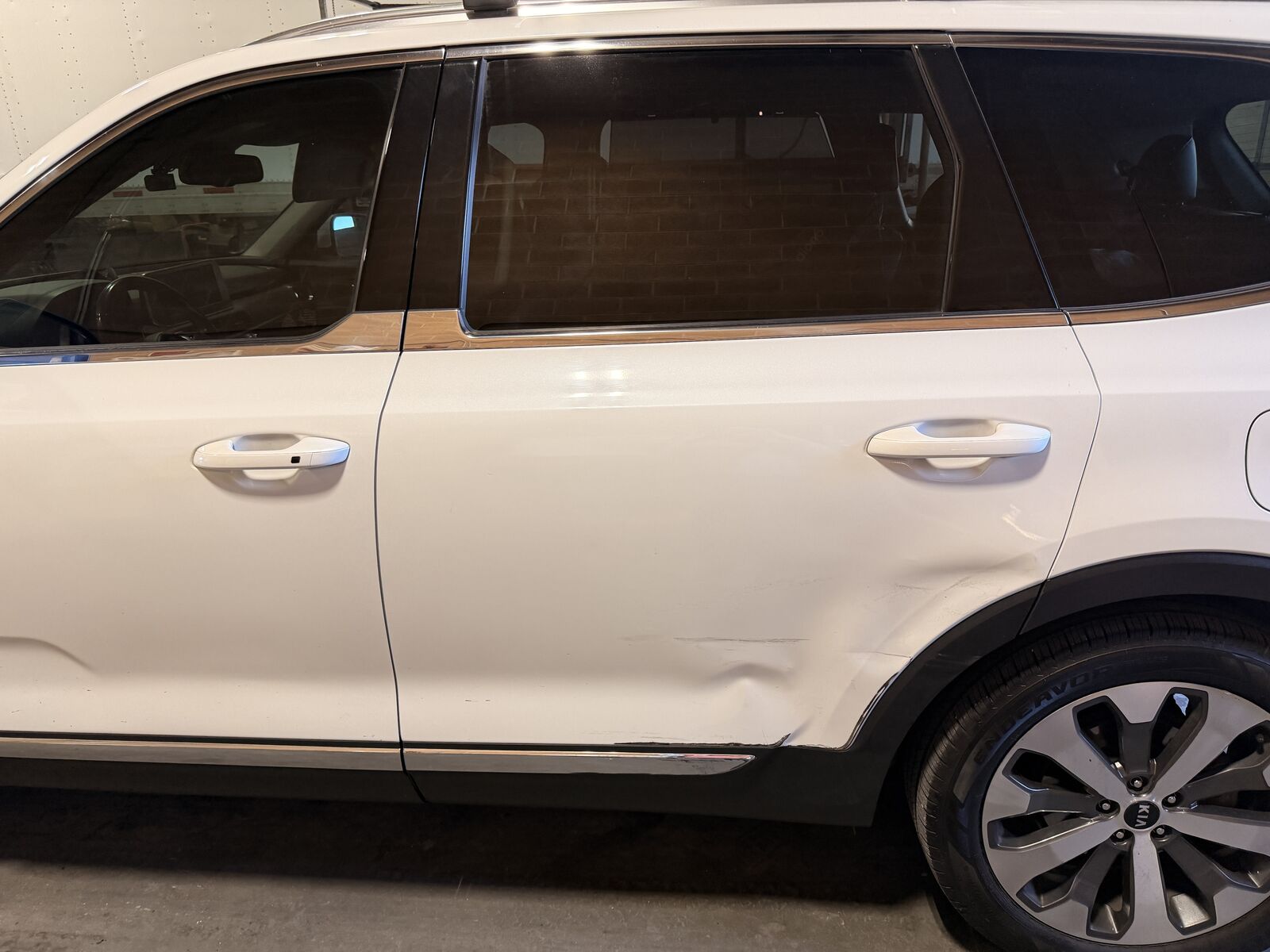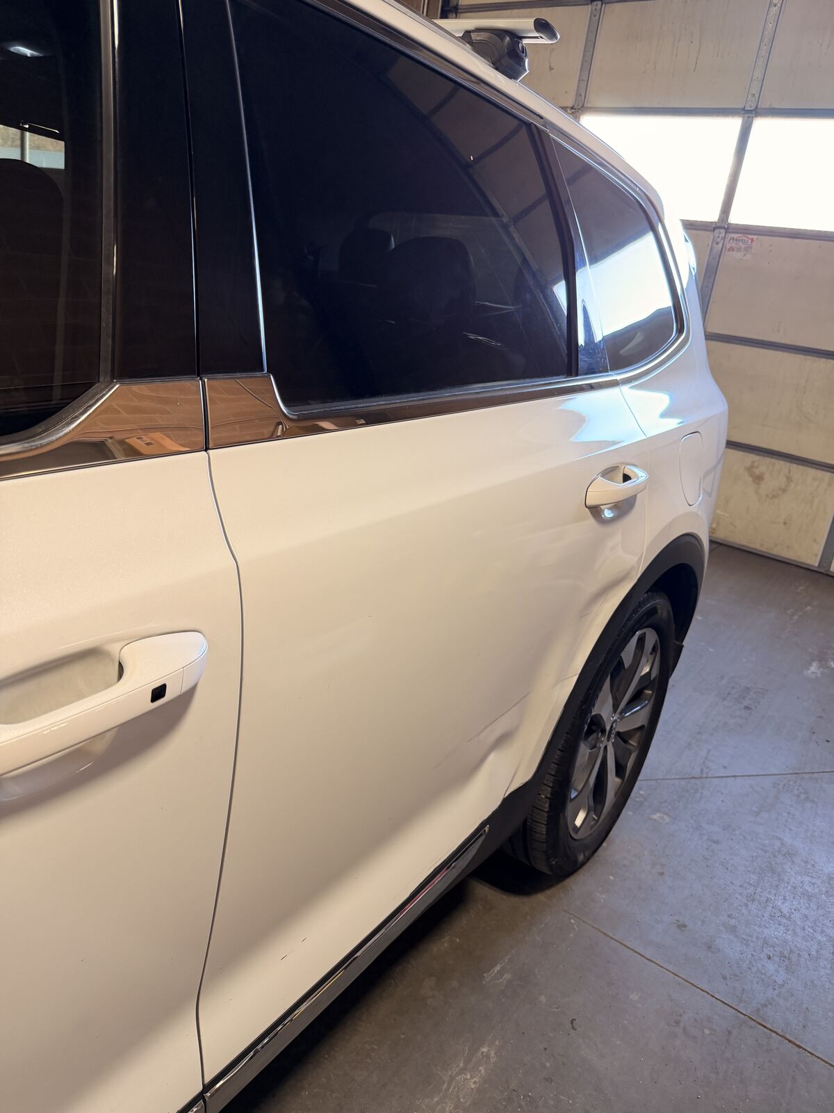 Zelle2020 Telluride drivers side rear door (left) Dent on corner of door but everything else works great. Dent does not affect interior of door. Door closed correctly, no leaks, nothing mechanically wrong with the door. Complete door with interior panels, speaker, sun shade, glass etc. Door is no longer on vehicle.