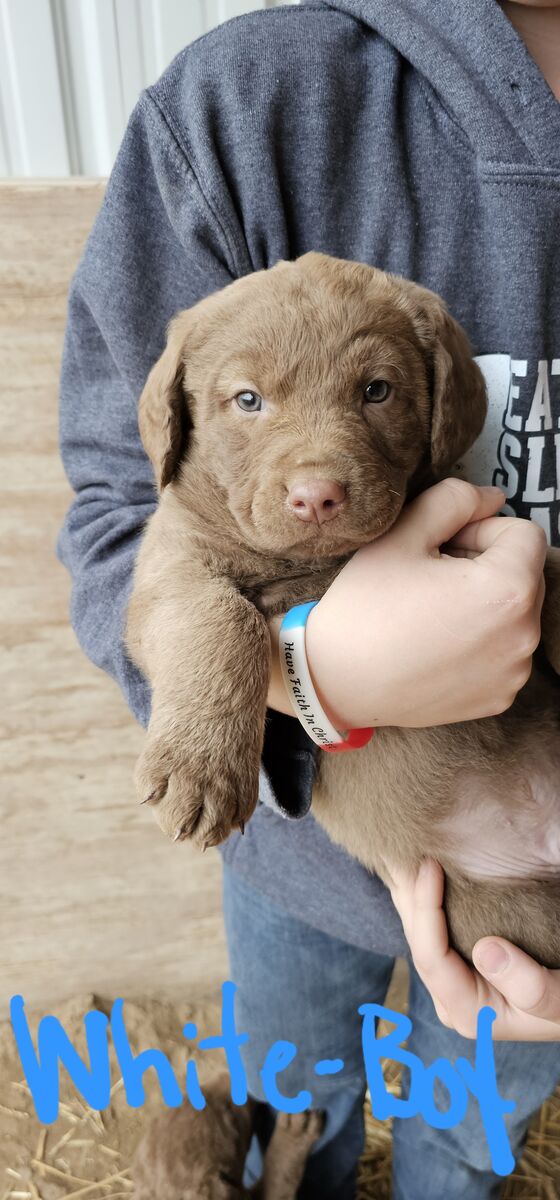 Purebred AKC Registered Chesapeake Bay Retrievers. 2 males left. Both parents are amazing hunting and family dogs. Male has over 1200 waterfowl retrieves as a 5 year old. First shots will be given. They will be ready to go to their forever homes the first part of March.