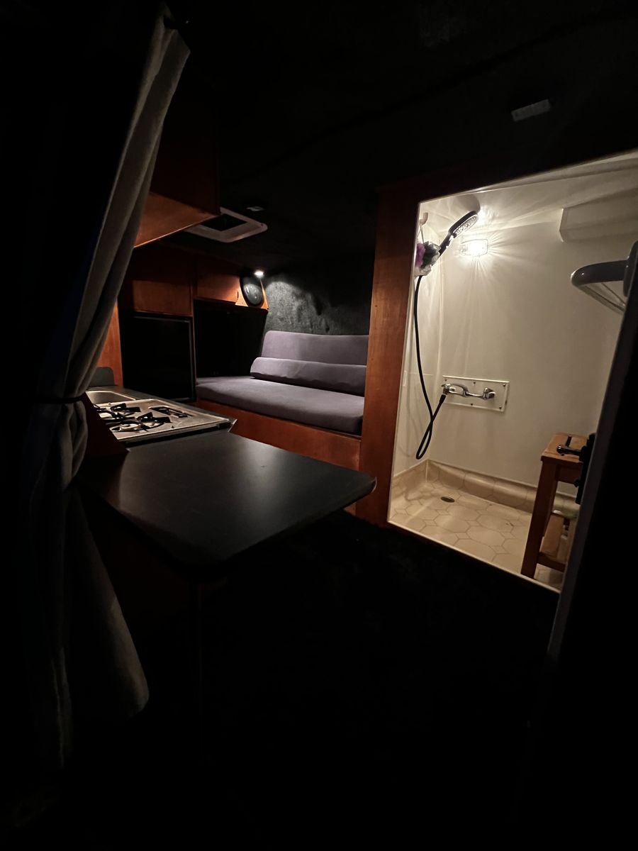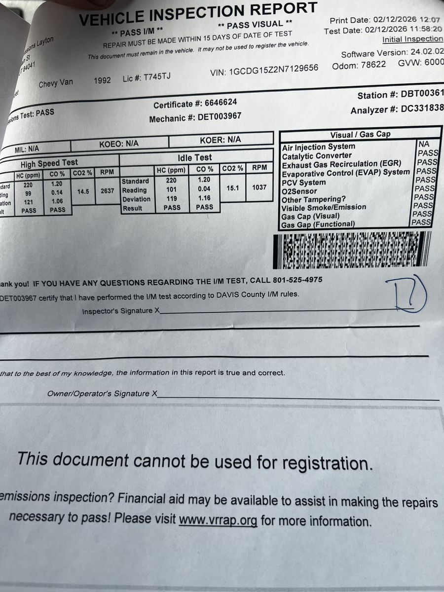 1992 Chevy G10 van 6 cyl Gas ( good MPG ) Under 79k original miles Emissions just completed, good for 90 days Stove, sink, fridge, shower, water heater and solar all work great. New shag carpet Leather driver and passenger seat in great shape Body in great shape Aftermarket headlights, marker lights, tail lights Aftermarket stereo system. I love this van but my bus is finished so I need to clear some room in my driveway.