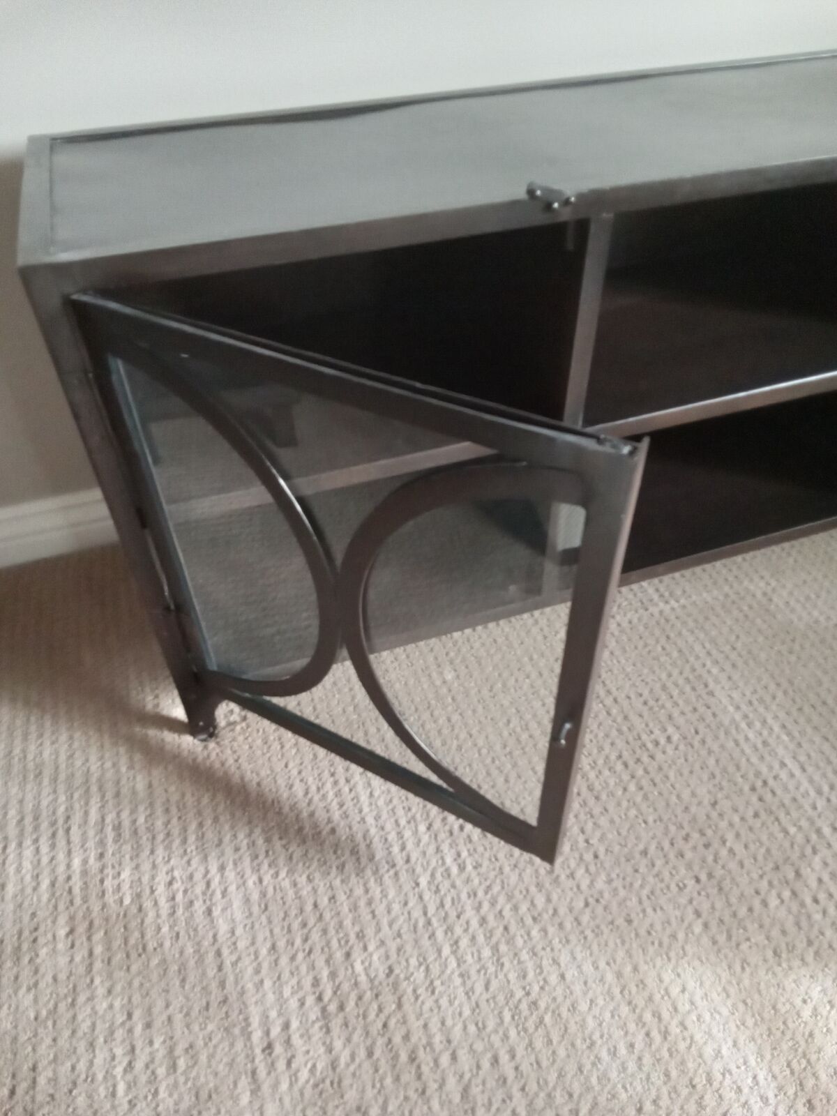 ZelleUnique Beautiful Vintage Handcrafted Metal & Glass Console Cabinet – Antique Decor Design - Like New, Excellent Condition!