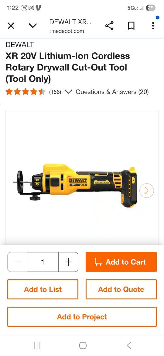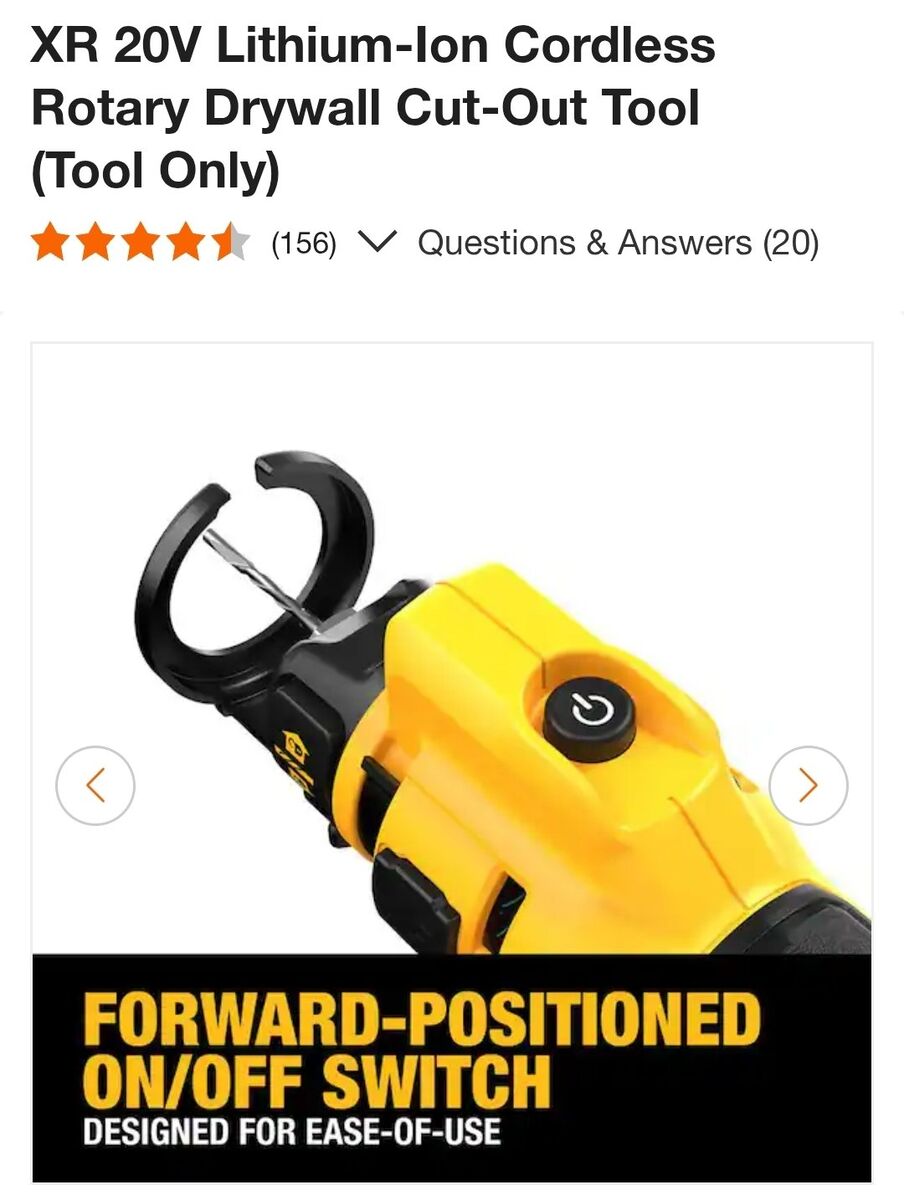 ZelleNew Dewalt 20V XR Lithium-Ion Cordless Rotary Drywall Cut-out Tool. TOOL ONLY. Model Number DCE555B