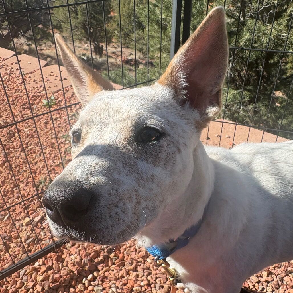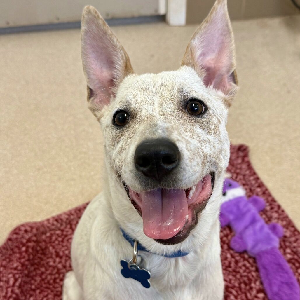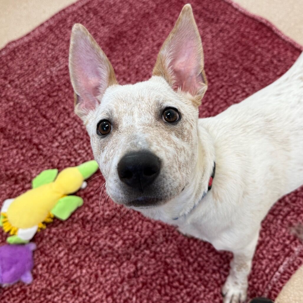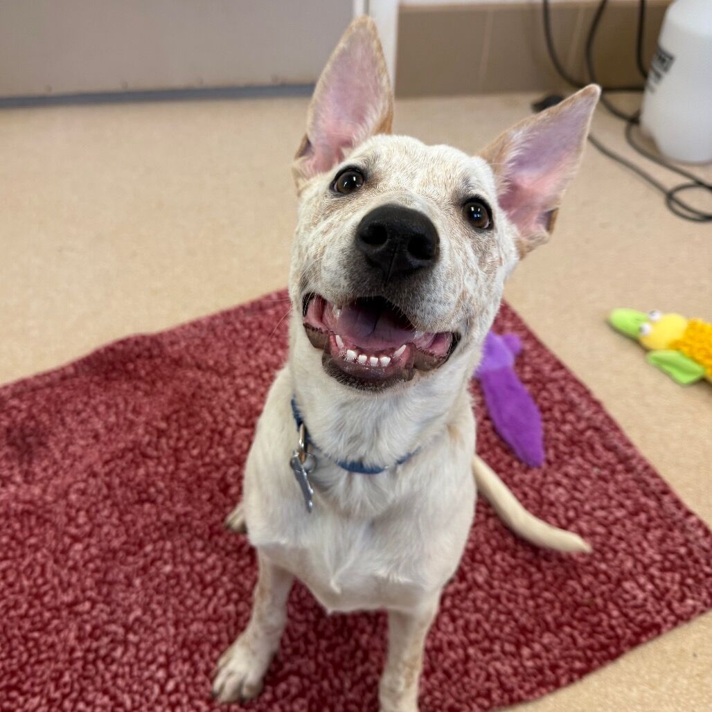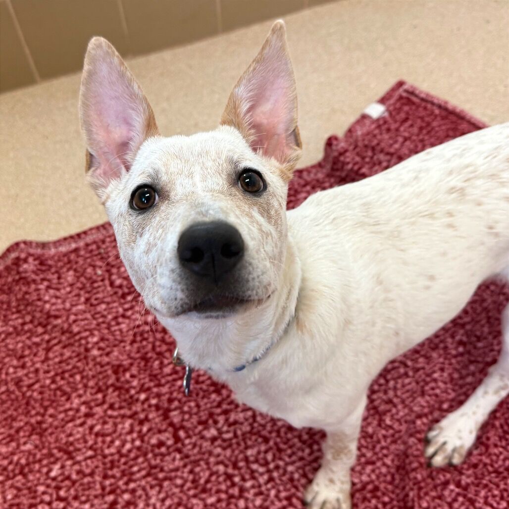 Hi, I’m Sequin I’m a young cattle dog mix with the softest heart and the cutest ears around. I can be a little shy when I first meet new people but give me a moment and you’ll see my gentle, curious personality shine through. I’m still a baby, learning about the world one day at a time, and I’d love a patient, loving home to help me build my confidence. Once I feel safe, I enjoy affection, quiet companionship, and watching everything around me with my bright puppy eyes. If you’re looking for a sweet soul to grow up with and help blossom, I might be your girl