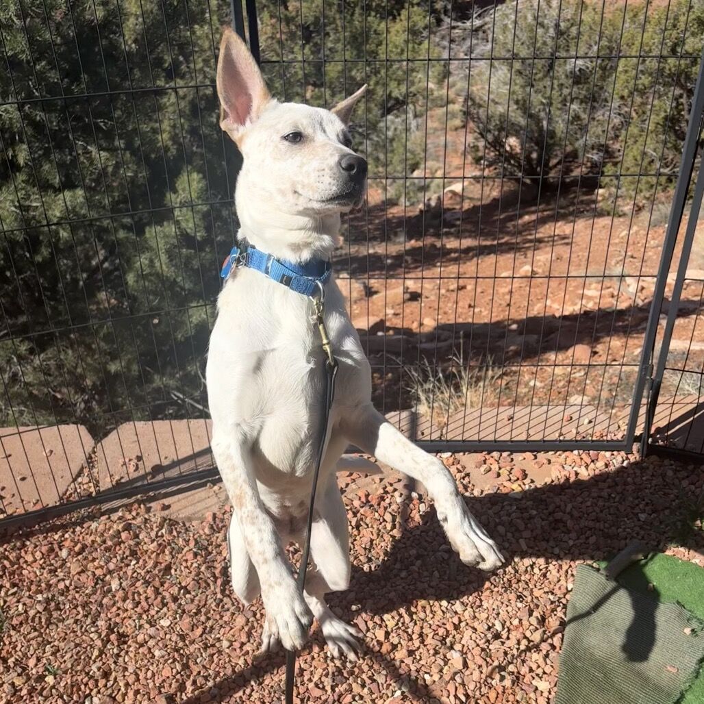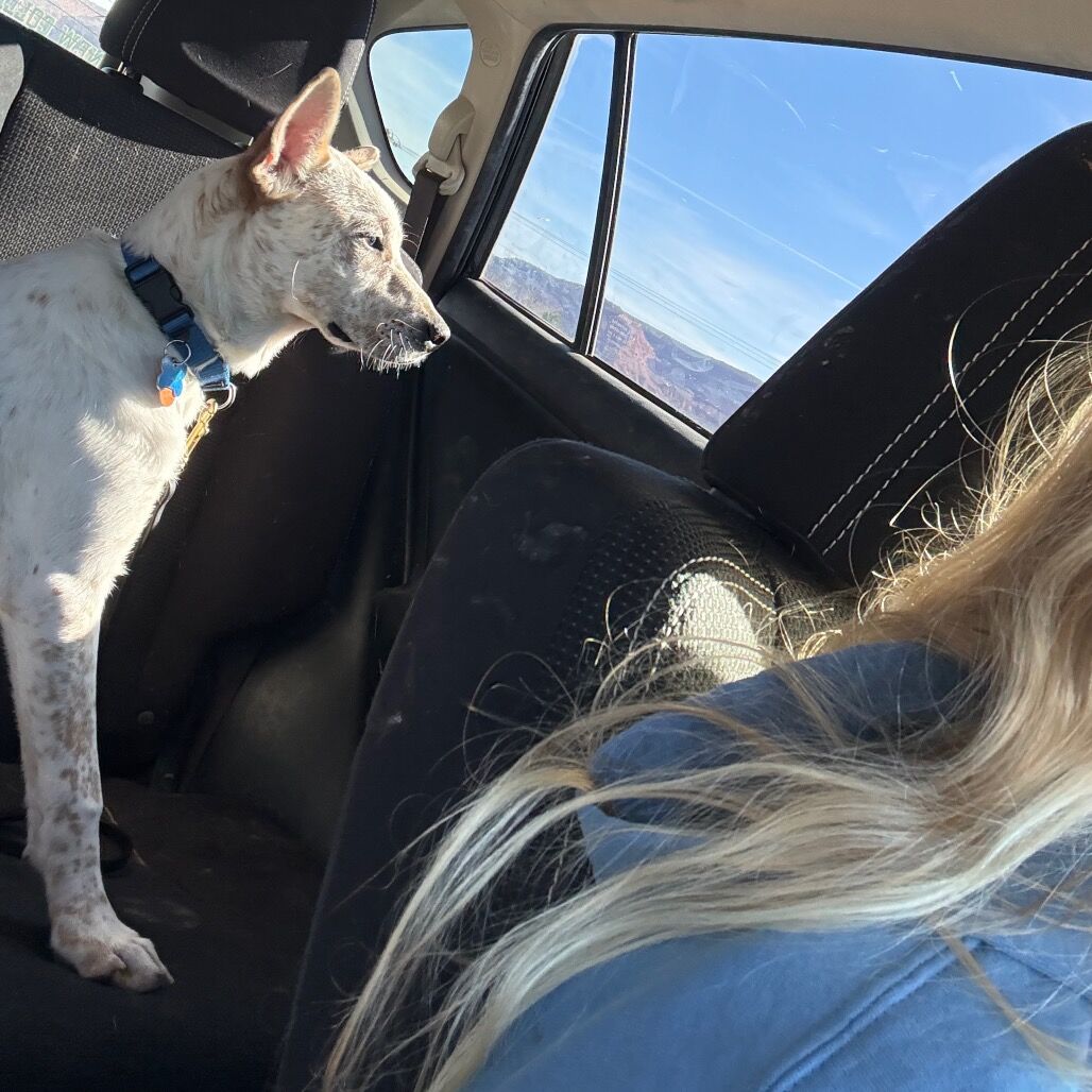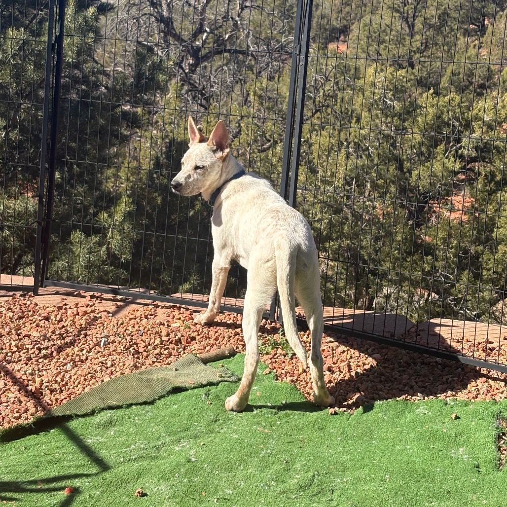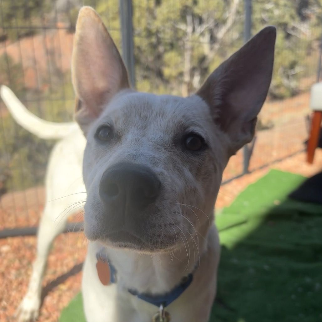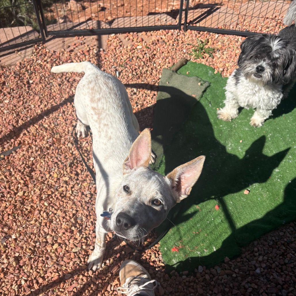 Hi, I’m Sequin I’m a young cattle dog mix with the softest heart and the cutest ears around. I can be a little shy when I first meet new people but give me a moment and you’ll see my gentle, curious personality shine through. I’m still a baby, learning about the world one day at a time, and I’d love a patient, loving home to help me build my confidence. Once I feel safe, I enjoy affection, quiet companionship, and watching everything around me with my bright puppy eyes. If you’re looking for a sweet soul to grow up with and help blossom, I might be your girl