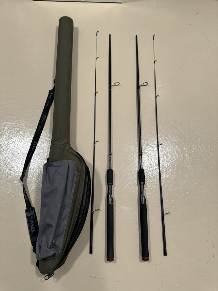 VenmoLike new!! BW Sports dual hard case for spinning rods and reels. Used on a 3 day fishing trip. *Check out my other ads. Shakespeare Ugly Stik GX2 rods and Pflueger President GR spinning reels with braided line 48” length