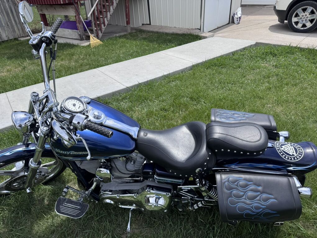 For sale 02 FXDWG3 CVO Wideglide Screaming Eagle. One of a kind bike, runs amazing, 20,278 miles,only 2,500 ever made in this color. Comes with original ferring, ostrich leather seat, and a clip on windshield. Bike was recently serviced, carb cleaned, newer tires Aftermarket Rinehart exhaust, Aftermarket saddlebags. $7,000 OBO