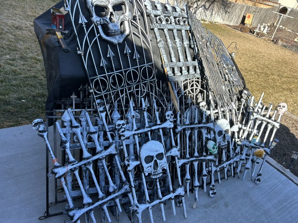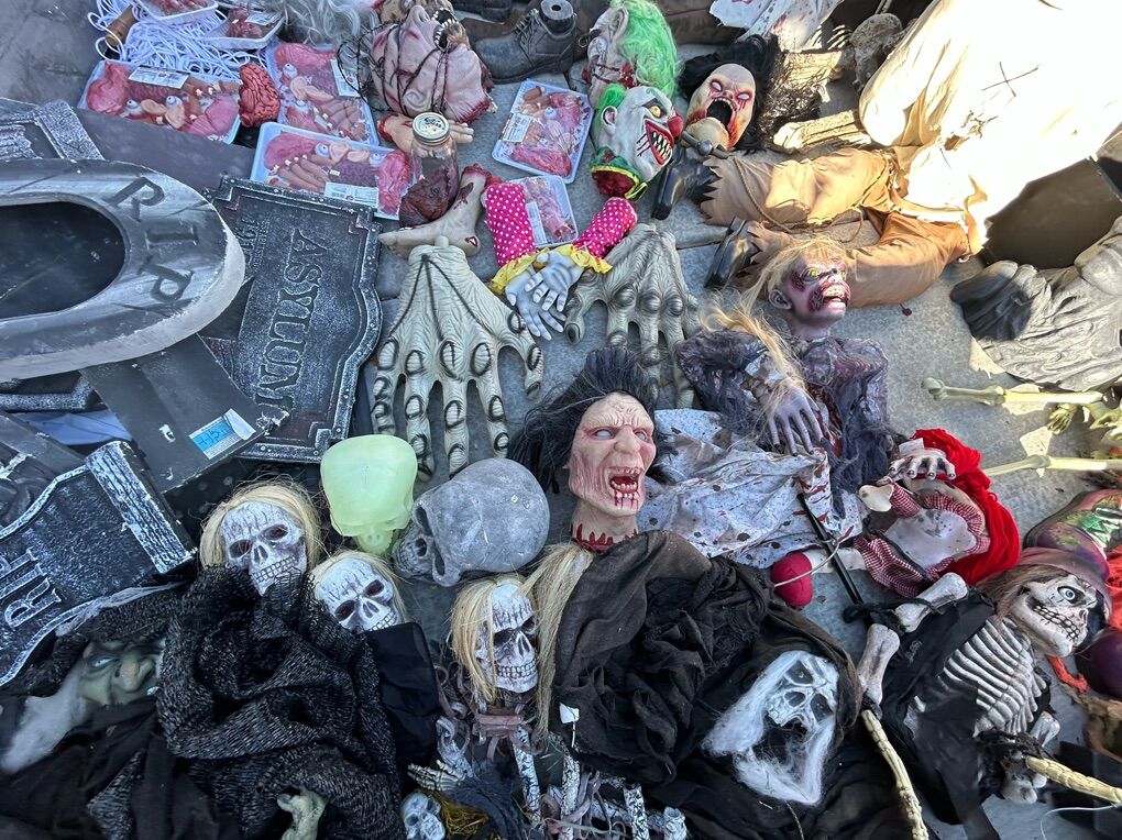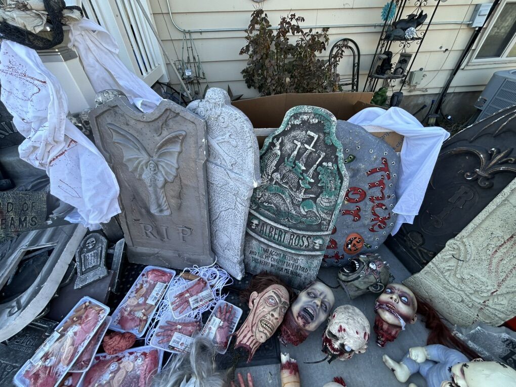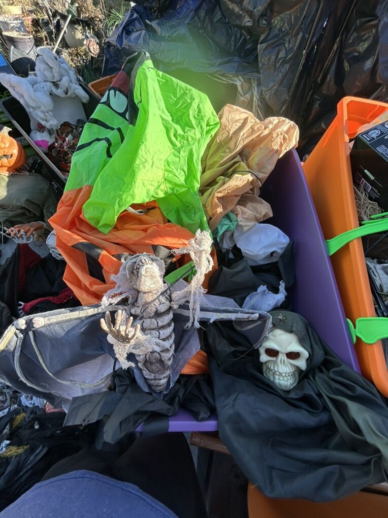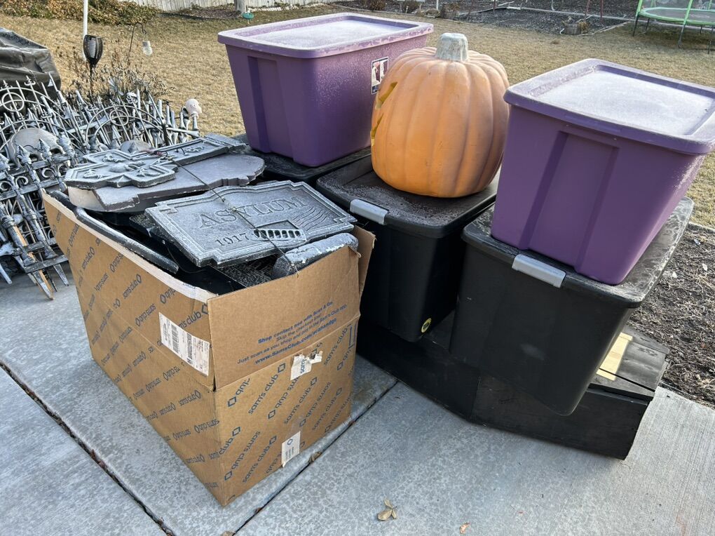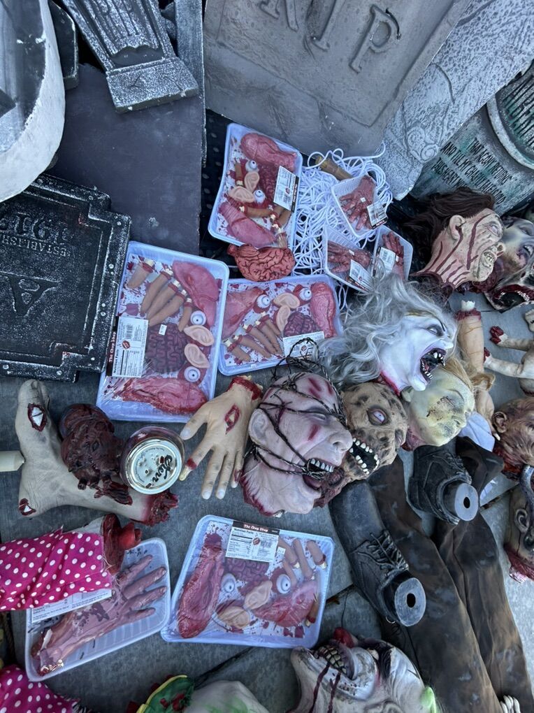 VenmoSee pictures for details, About 40 feet of interlocking metal fence with stakes, rubber scary heads, several foam headstones of various sizes, chop shop fake organ packs, fake liquid blood, bucket of spray paint cans, life size custom coffin with skeleton, various other spooky things. Must buy them all, not selling them separately, cash or Venmo only.
